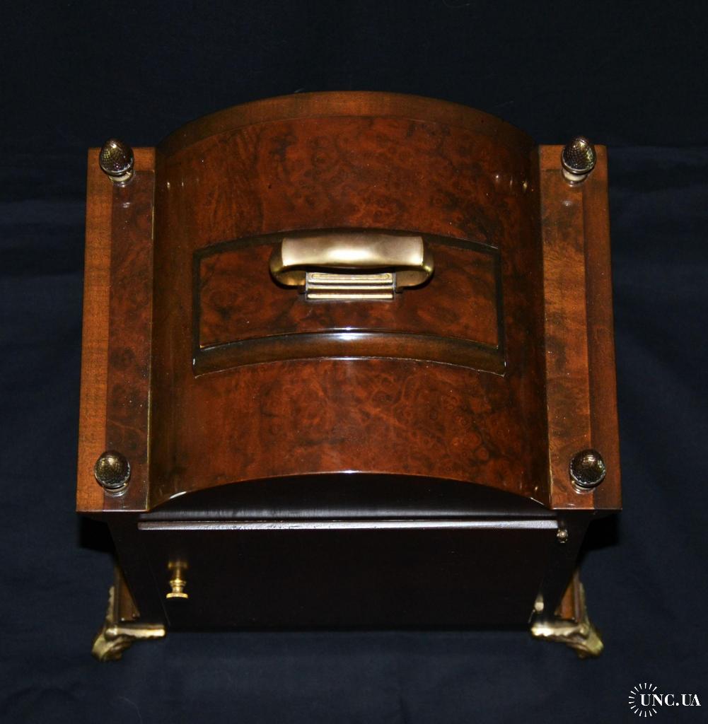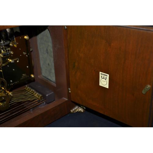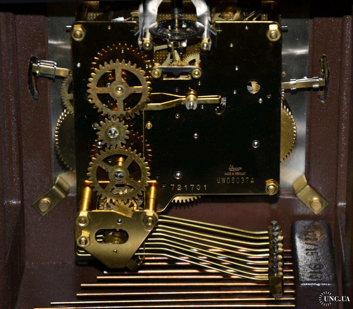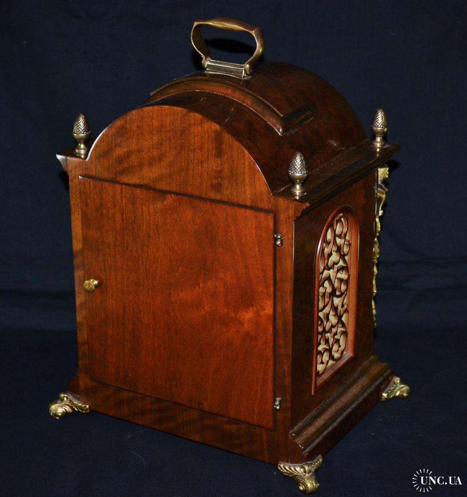 Антикварные кабинетные (каминные, настольные) часы WUBA от Warmink, подзавод на 9 суток, бой каждый полчаса и четверти, массив ореха, бронза, роспись, чеканка, конец 1960-х годов,