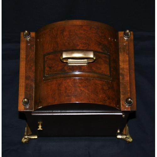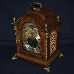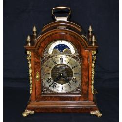 Корпус выполнен из массива ореха и украшен декоративными элементами из бронзы, циферблаты имеют роспись в старинном стиле – верхний циферблат показывает смену фаз луны. Полная смена происходит в течение 29,5 суток.