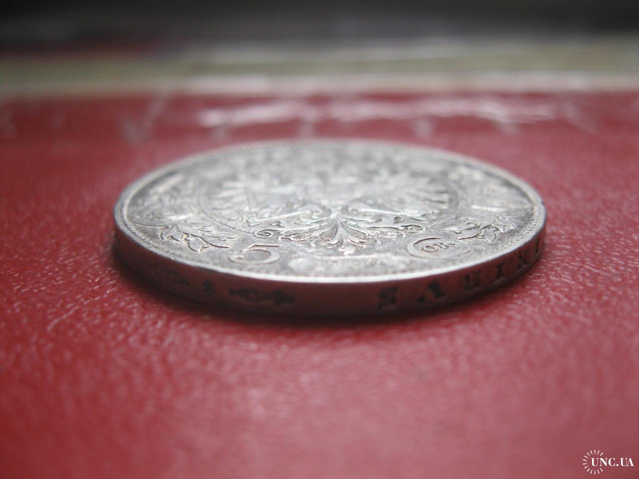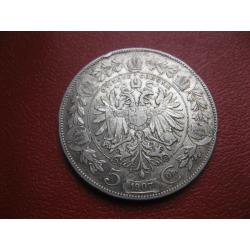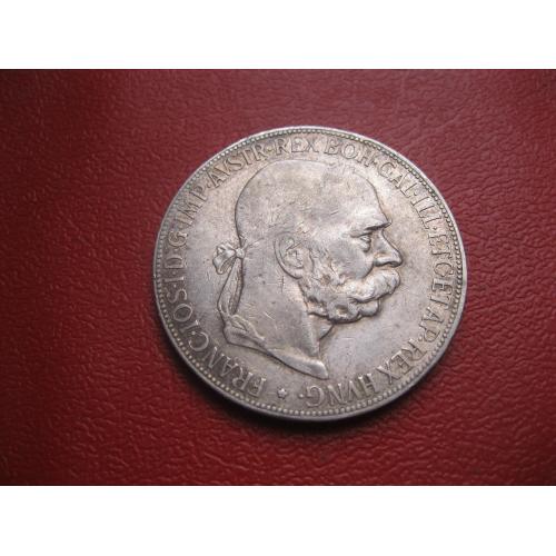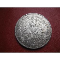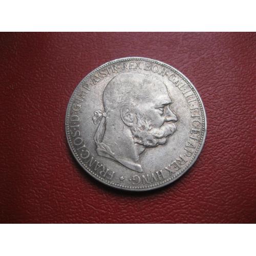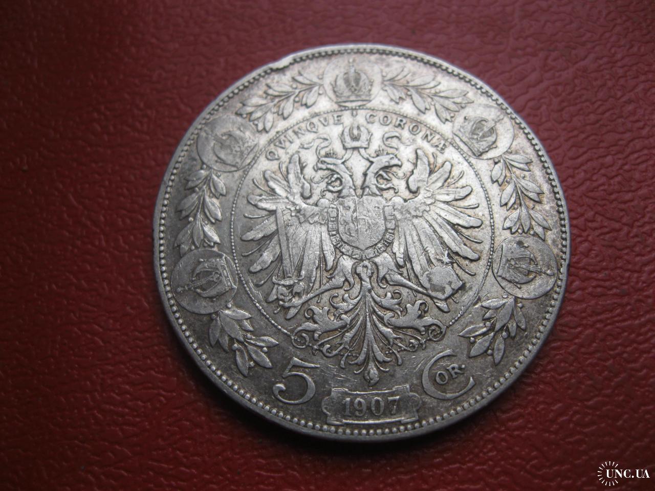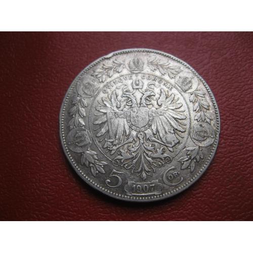 Состояние на фото. Австро - Венгрия 5 крон (corona) 1907 года для Австрии .Отличный сохран..Оригинал.Серебро.