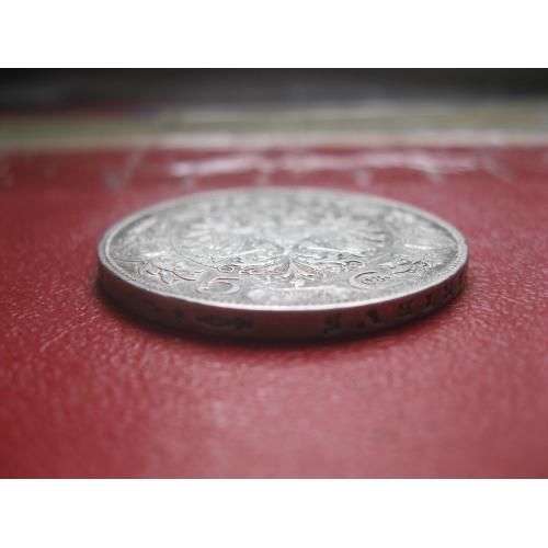 . По каталогу вес: ~24 г.Диаметр: 36 мм.Материал: серебро 900-ой пробы.Гурт: вдавленная надпись "VIRIBUS UNITIS" - "Объединёнными усилиями". Нечастая!