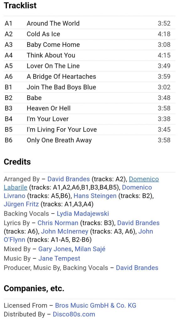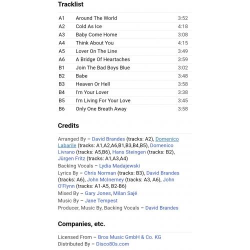 Вінілова платівка. Сімнадцятий, в дискографії, студійний, альбом Німецької євро диско групи Bad Boys Blue, учасниками якої на той час були Джон Макінерні, Ендрю Томас та Кевін МакКой (Around The World) 2003. Випуск фірми (Maschina) Estonia, 2024-ий рік. Кольоровий вініл (Coloured Vinyl). Лімітований тираж (Limited Edition). Видання нове, запаковане. Категорія S/S. Відправка по Україні службами доставки: Нова Пошта, Укр Пошта, Делівері. Також відправляємо посилки за кордон по цілому світу.