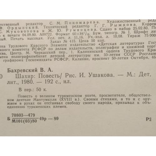 Бахревский. Шахир. Историческая повесть. Издательство: Детская литература. 1980 год. Состояние очень хорошее. На титуле аккуратная подпись.