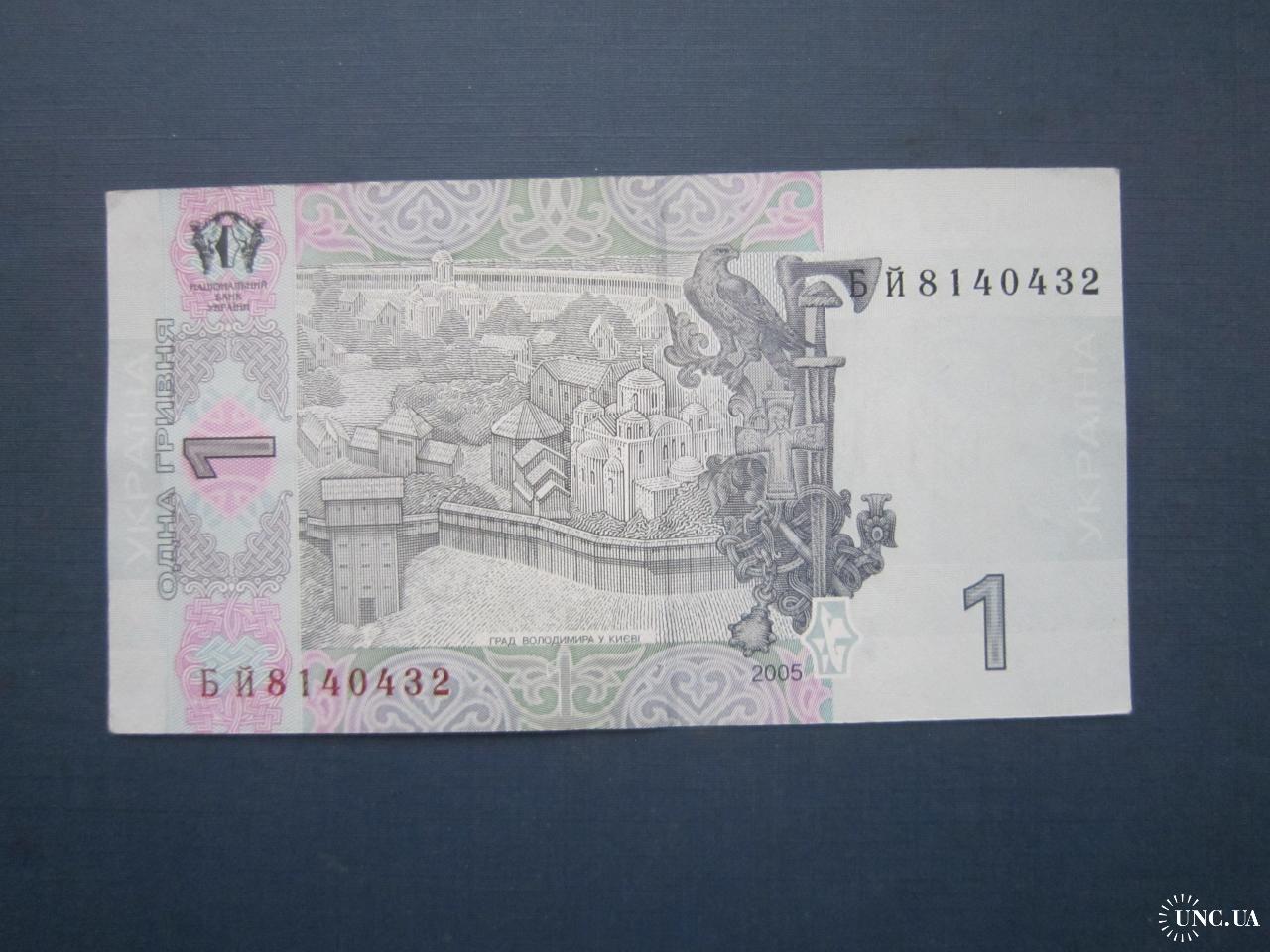Банкнота 1 гривня Україна 2005 серія БЙ стан XF++