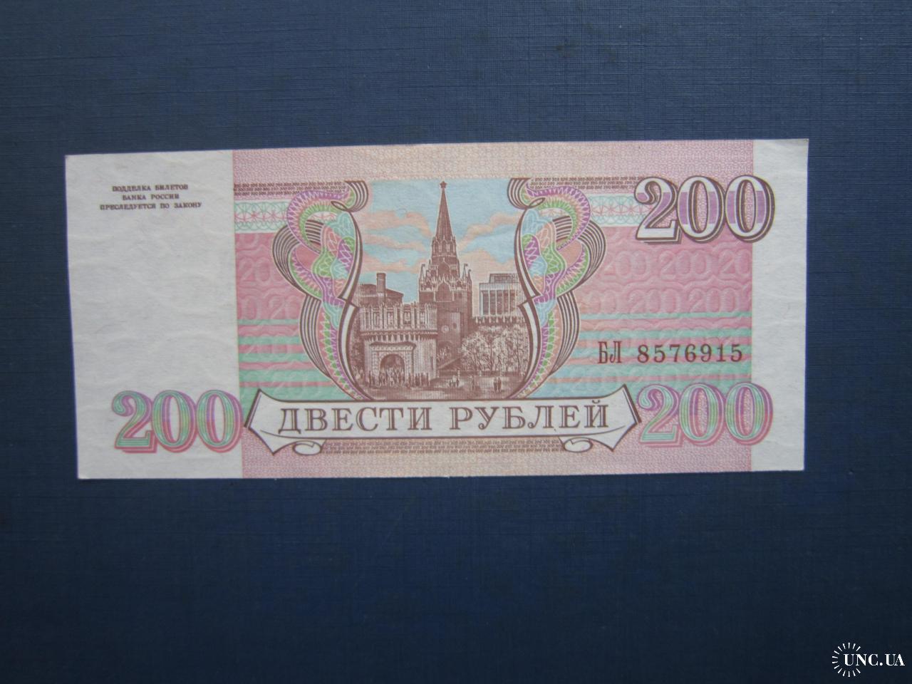 Банкнота 200 рублів 1993 серія БЛ UNC прес