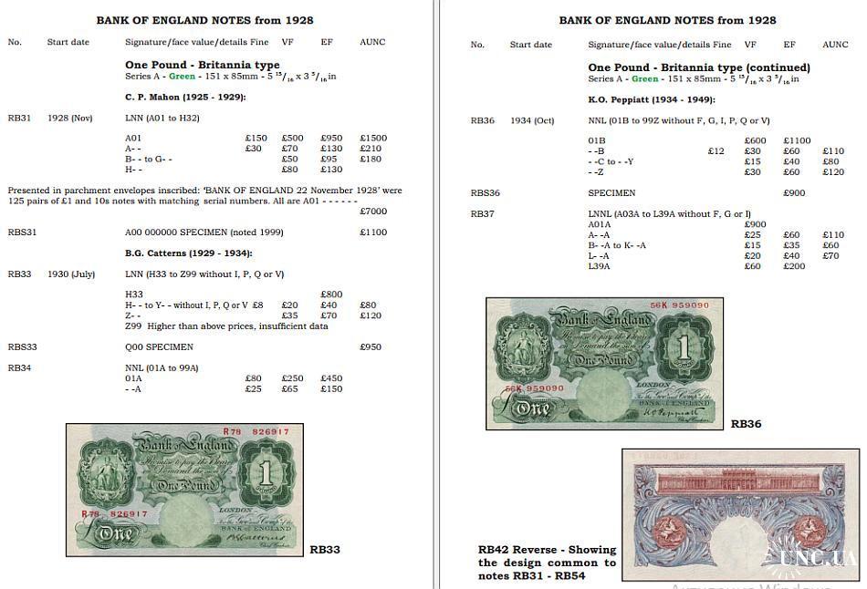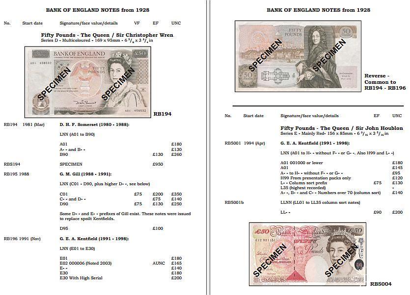All of the major types are illustrated clearly, as are a number of variety types, e.g. how to spot a Nazi forged white fiver.