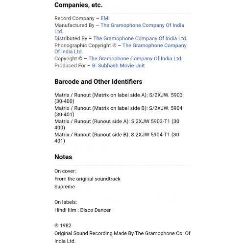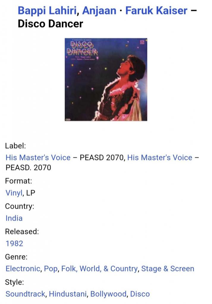 Вінілова платівка. Саундтрек. Музика і пісні з легендарного Індійського кінофільму Танцор Диско, головну роль в якому виконував Мітхун Чакраборті. Повна версія. (Disco Dance) 1982. Випуск фірми (His Master's Voice) India, 1982-ий рік. Оригінальне, першопресове Індійське видання. Рідкісне (Rare). Лімітований тираж (Limited Edition). Стан платівки EX+. Стан конверту ЕХ+. Відправка по Україні службами доставки: Нова Пошта, Укр Пошта, Делівері. Також відправляємо посилки за кордон по цілому світу.