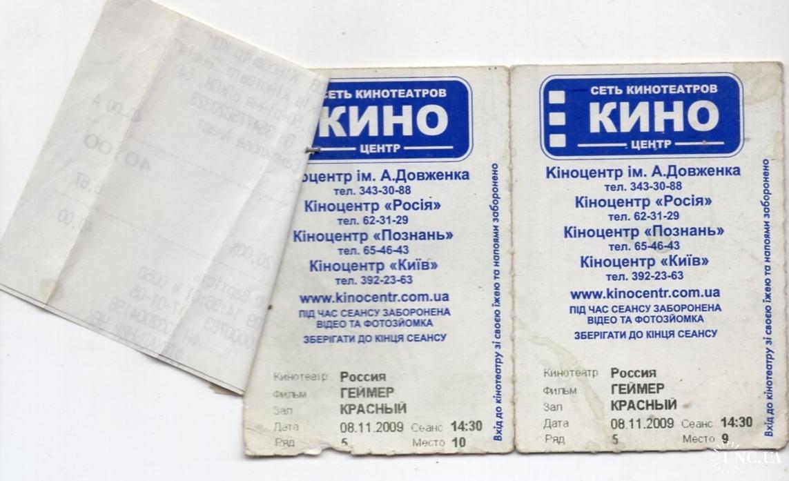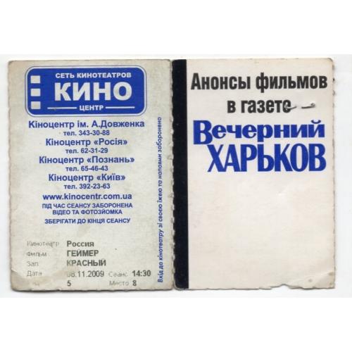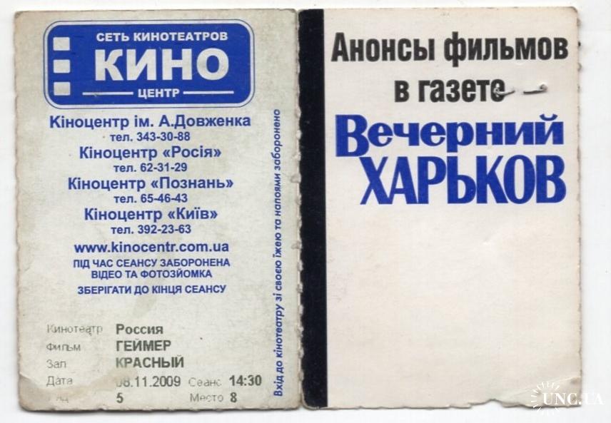 билет фильм Геймер Харьков кинотеатр Россия 08.11.2009