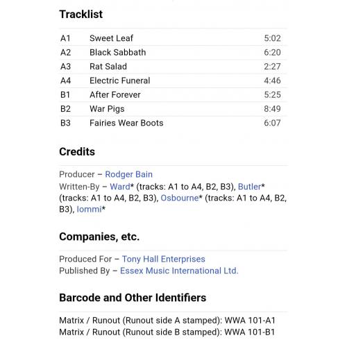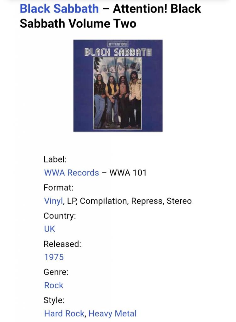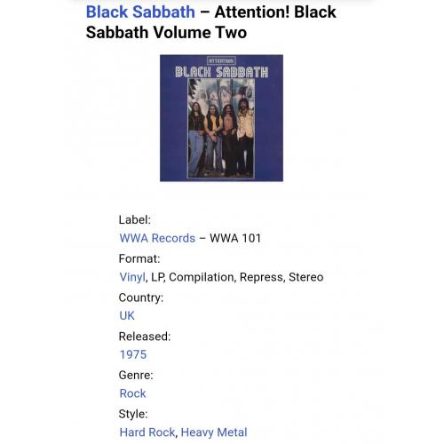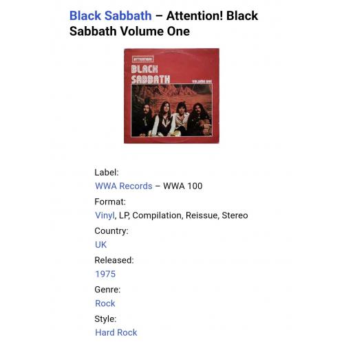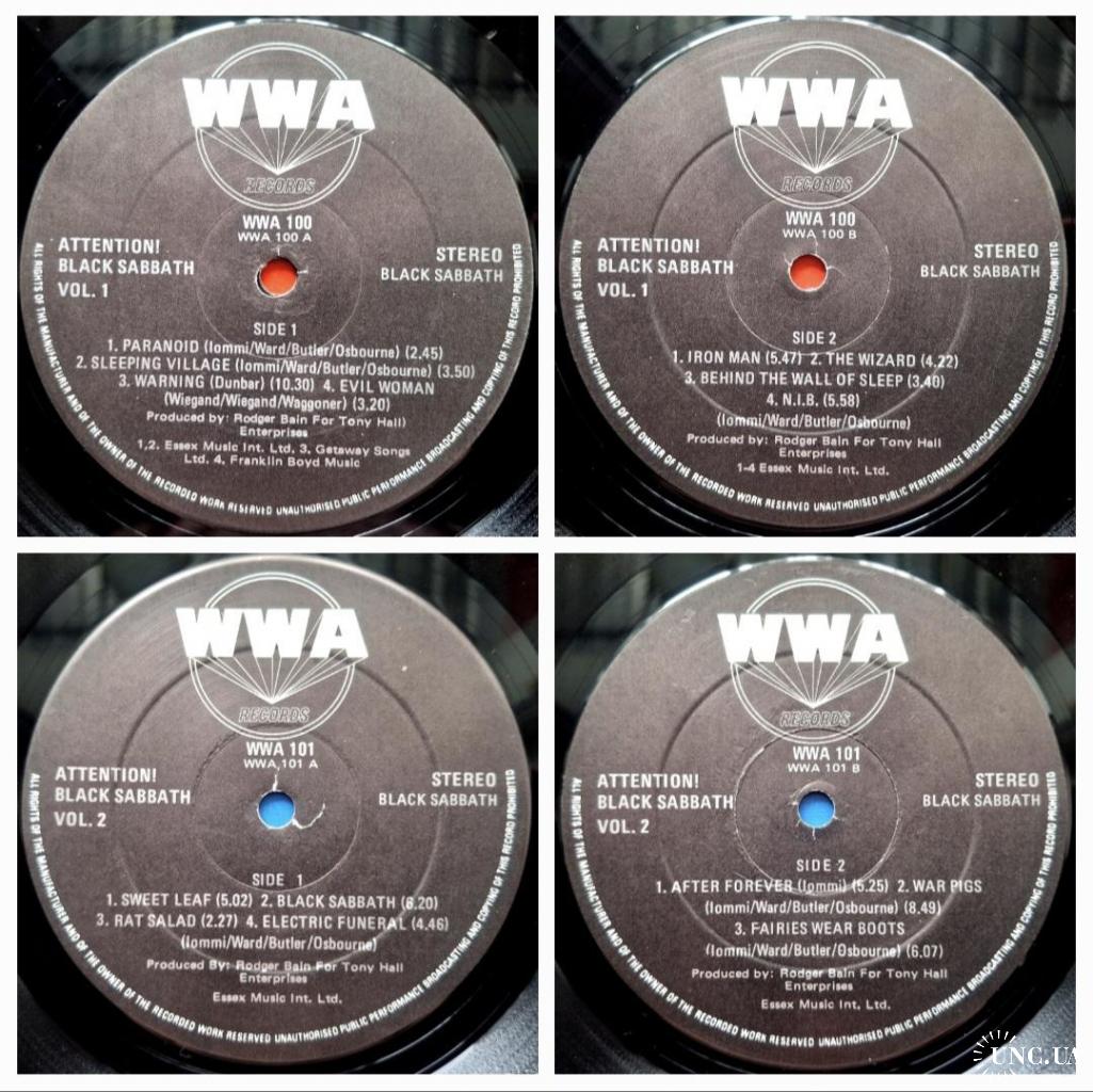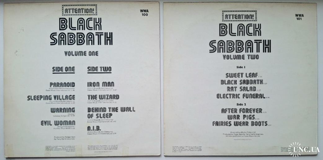 Вінілові платівки. Збірка ранніх хітів, Британської хард-рок, хеві метал, дум метал групи з міста Бірмінгема, Black Sabbath, яка складалась на той час з учасників Оззі Озборна, Тоні Айоммі, Гізера Батлера та Білла Ворда (Attention!) 1970-74. Випуск фірми (WWA Records) England, 1975-ий рік. Оригінальне, Британське видання з двох частин, двох платівок (2LP). Стан платівок: Vol-1 ЕХ+/VG+. Vol-2 EX+/EX+. Стан конвертів ЕХ+. Відправка по Україні службами доставки: Нова Пошта, Укр Пошта, Делівері. Також відправляємо посилки за кордон по цілому світу.