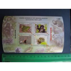 Блок 4 марки Бангладеш 2011 фауна жаба мавпа дельфін вівера MNH КЦ 7 $ прим'ятий кут