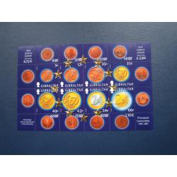 Блок 8 марок Гибралтар Великобритания 2002 монеты Европы Евро и евроценты на марках MNH КЦ 11 $