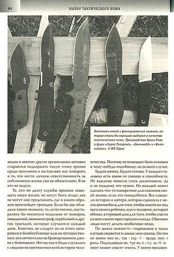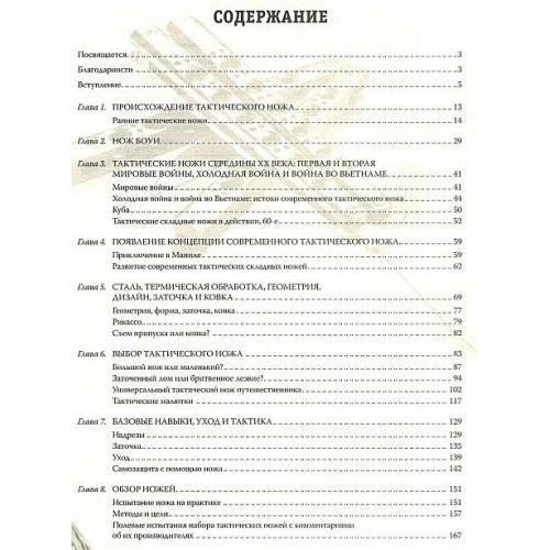 В справочнике представлен обзор порядка 200 моделей тактических боевых ножей:от клинков времён Римской империи, до самых современных, от находящихся в свободной продаже, до редчайших коллекционных экземпляров. Дамасская и нержавеющая сталь, плоский и сабельный профиль лезвия, фиксированный и складной клинок, длинные ножи и ножи-малютки - вы узнаете всё и даже больше о материалах, технологиях изготовления и дизайне ножей. Книга сориентирует вас в ведущих производителях боевых ножей, обучит основным тонкостям ухода за ними и приёмами самообороны с их использованием. Особенно интересными и познавательными для любителей холодного оружия будут результаты полевых испытаний лучших из лучших тактических ножей.