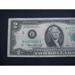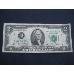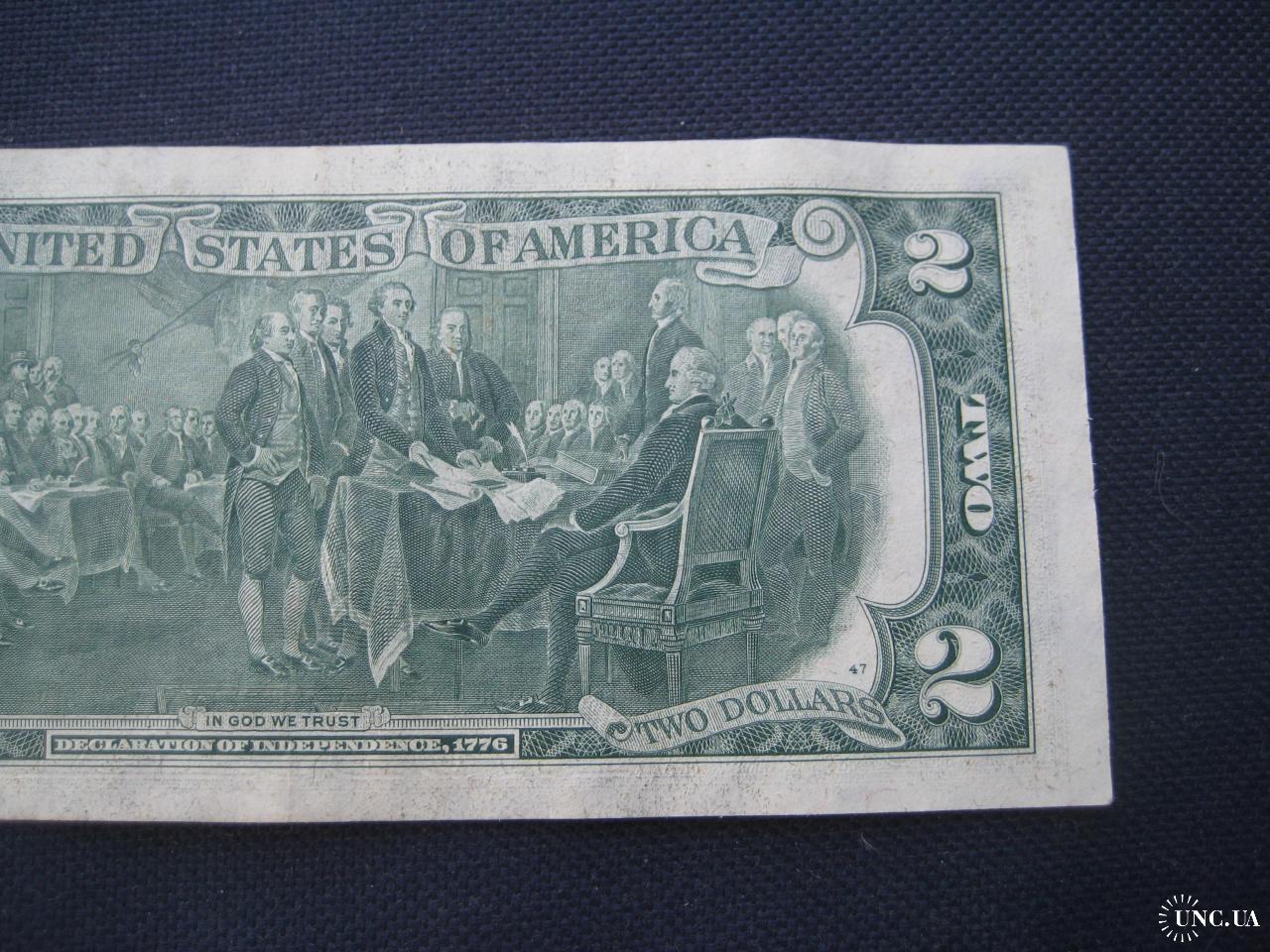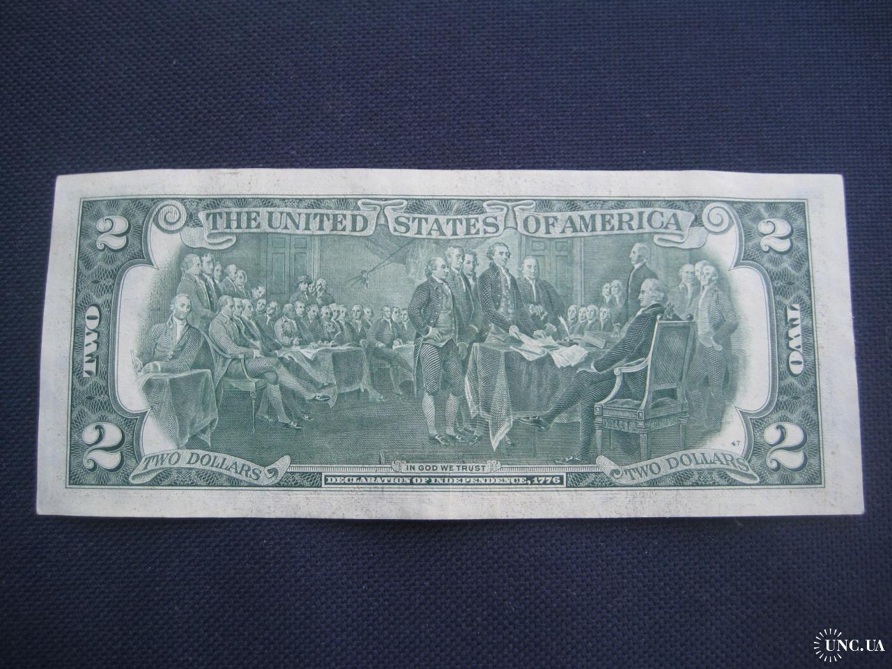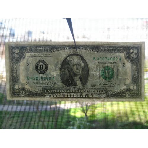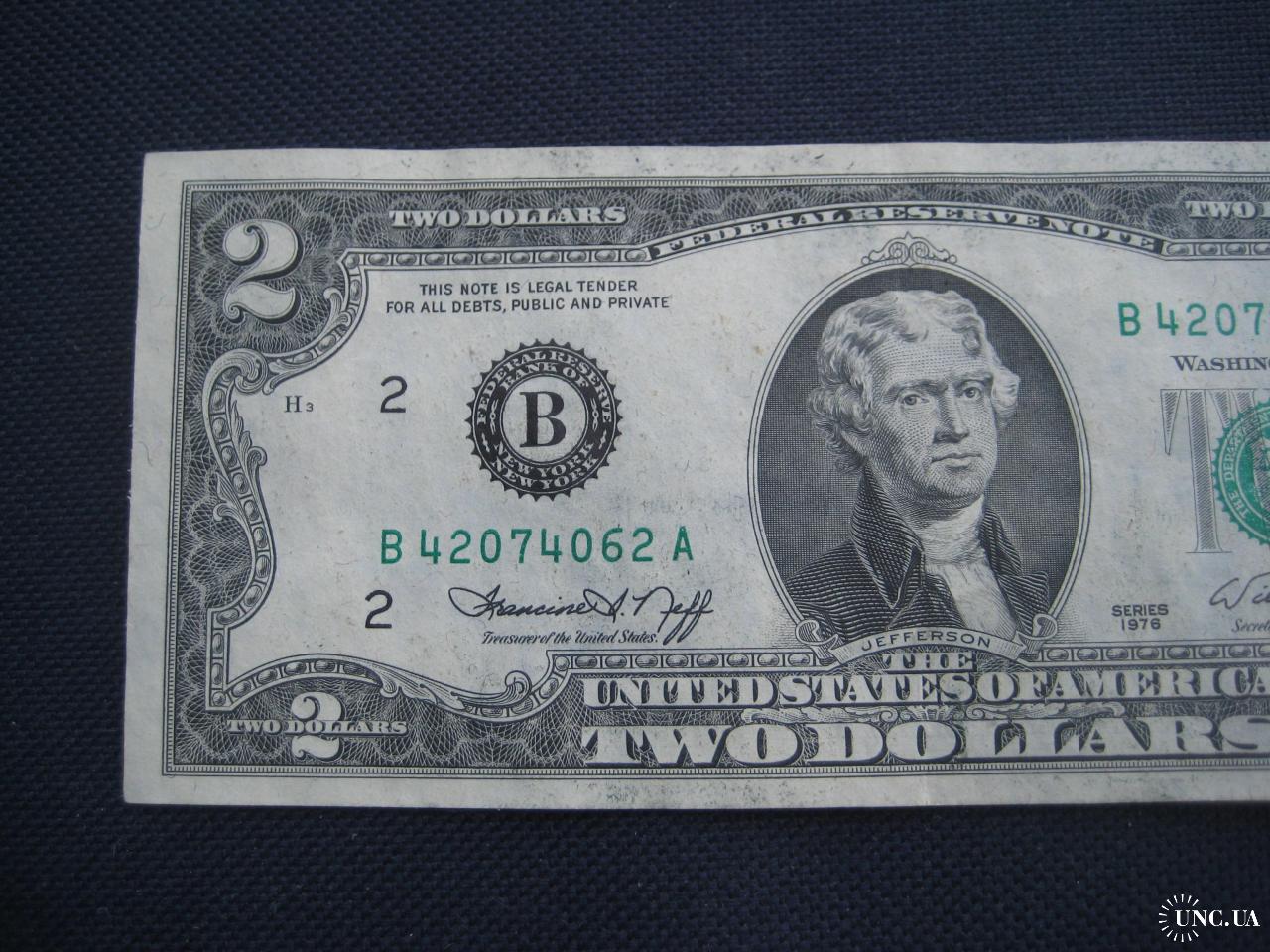 №638. Оригінальна бона - два долара США 1976 (В 42074062 А). Стан прошу оцінювати по фото. Розмір:6,6х15,6см. Пересилка - Нова пошта, Укрпошта. Для киян можливість зустрічі та перегляду (неділя метро Нивки). В РФ и Белоруссию не отправляю!