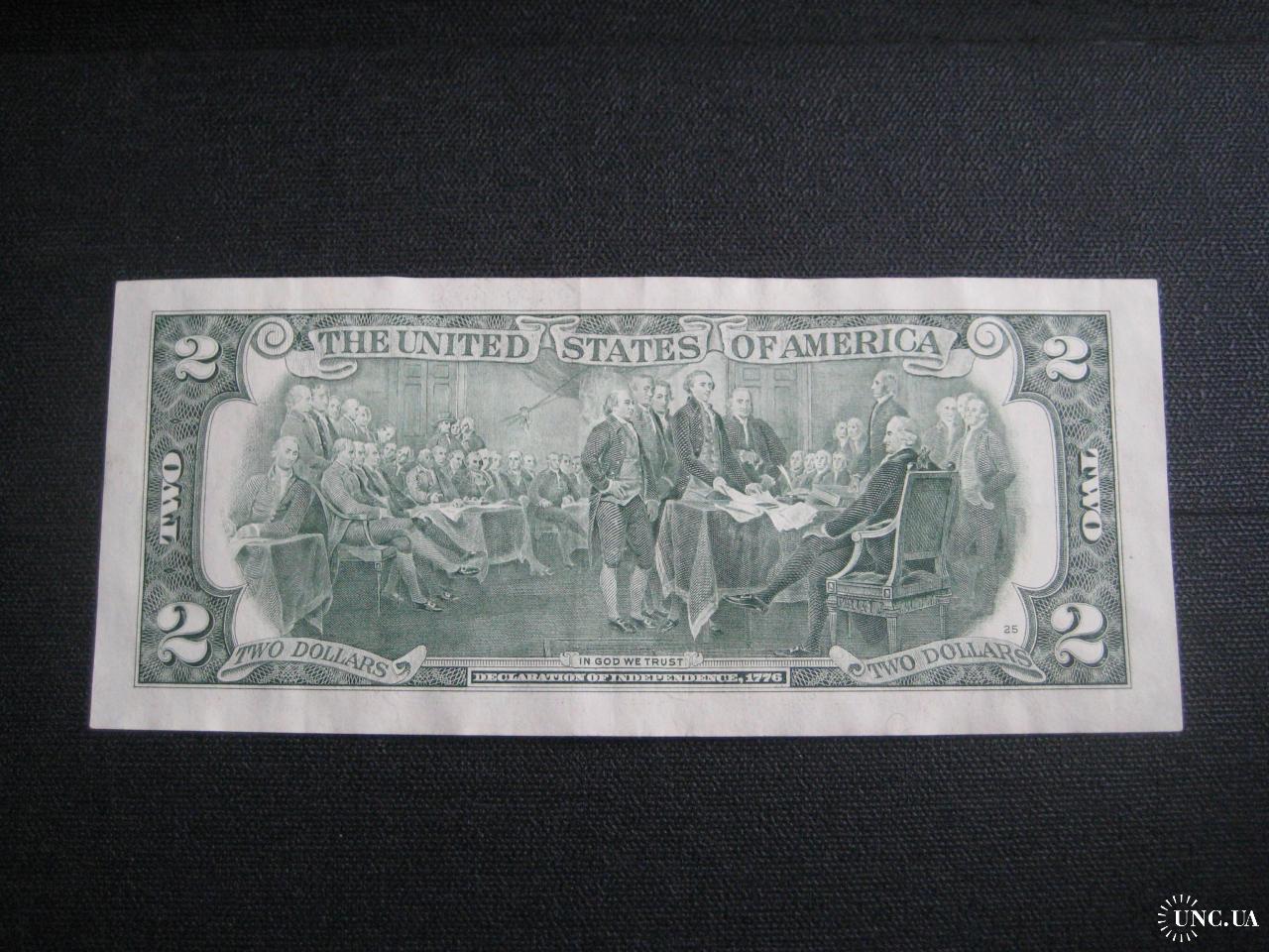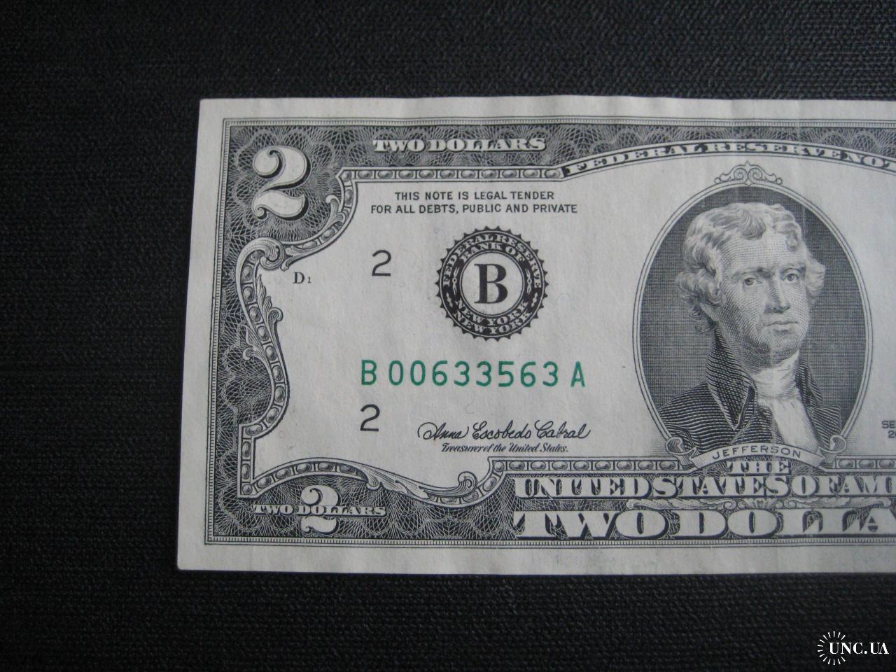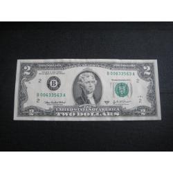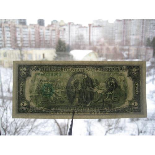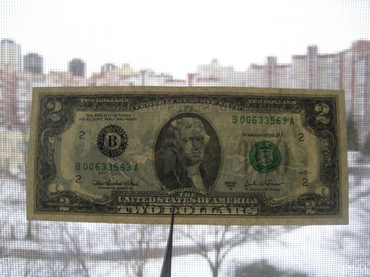 №847. Оригінальна бона - два долара США 2003 (В 00633563 A). Стан прошу оцінювати по фото. Розмір:6,6х15,7см. Пересилка - Нова пошта, Укрпошта. Для киян можливість зустрічі та перегляду (неділя метро Нивки). В РФ и Белоруссию не отправляю!