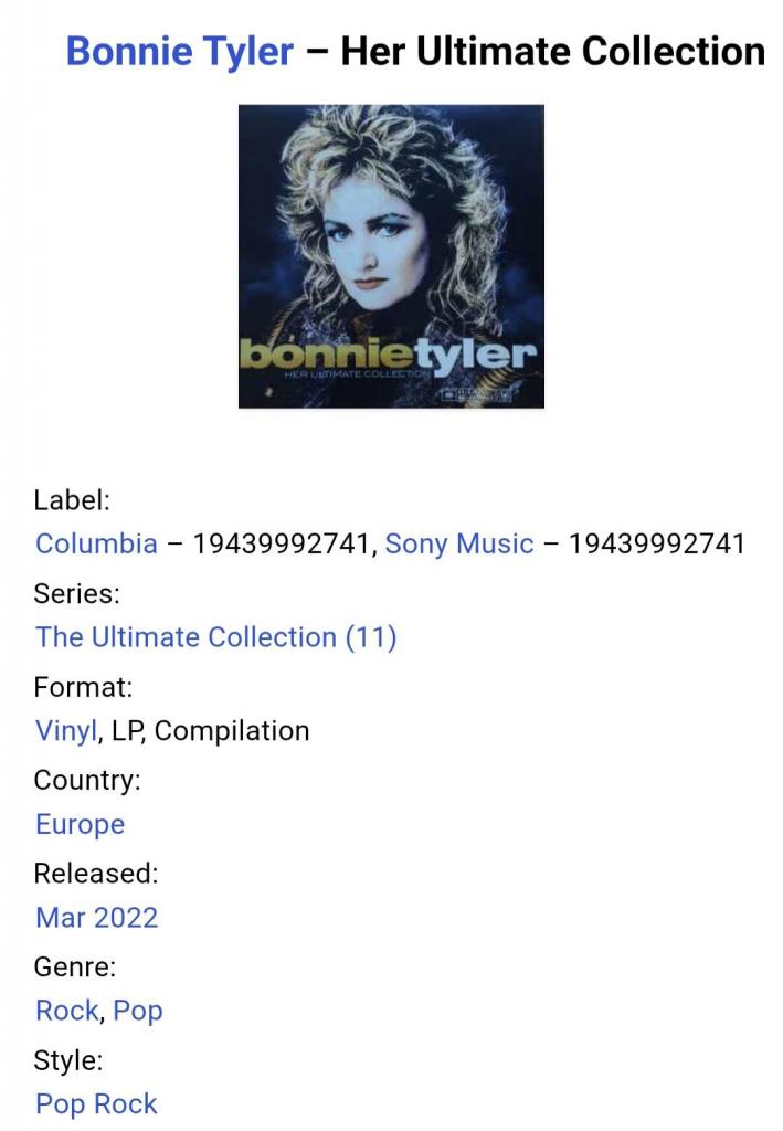1981-2000Вінілова платівка. Збірка з найкращих хітів Валійської поп-рок виконавиці Гейнор Гопкінс, більше відомою під сценічним ім,ям Bonnie Tyler (Her Ultimate Collection) 1977-2021. Випуск фірми (Columbia / Sony Music) Europe, 2022-ий рік. Видання нове, запаковане. Категорія S/S. Відправка по Україні службами доставки: Нова Пошта, Укр Пошта, Делівері. Також відправляємо посилки за кордон по цілому світу.