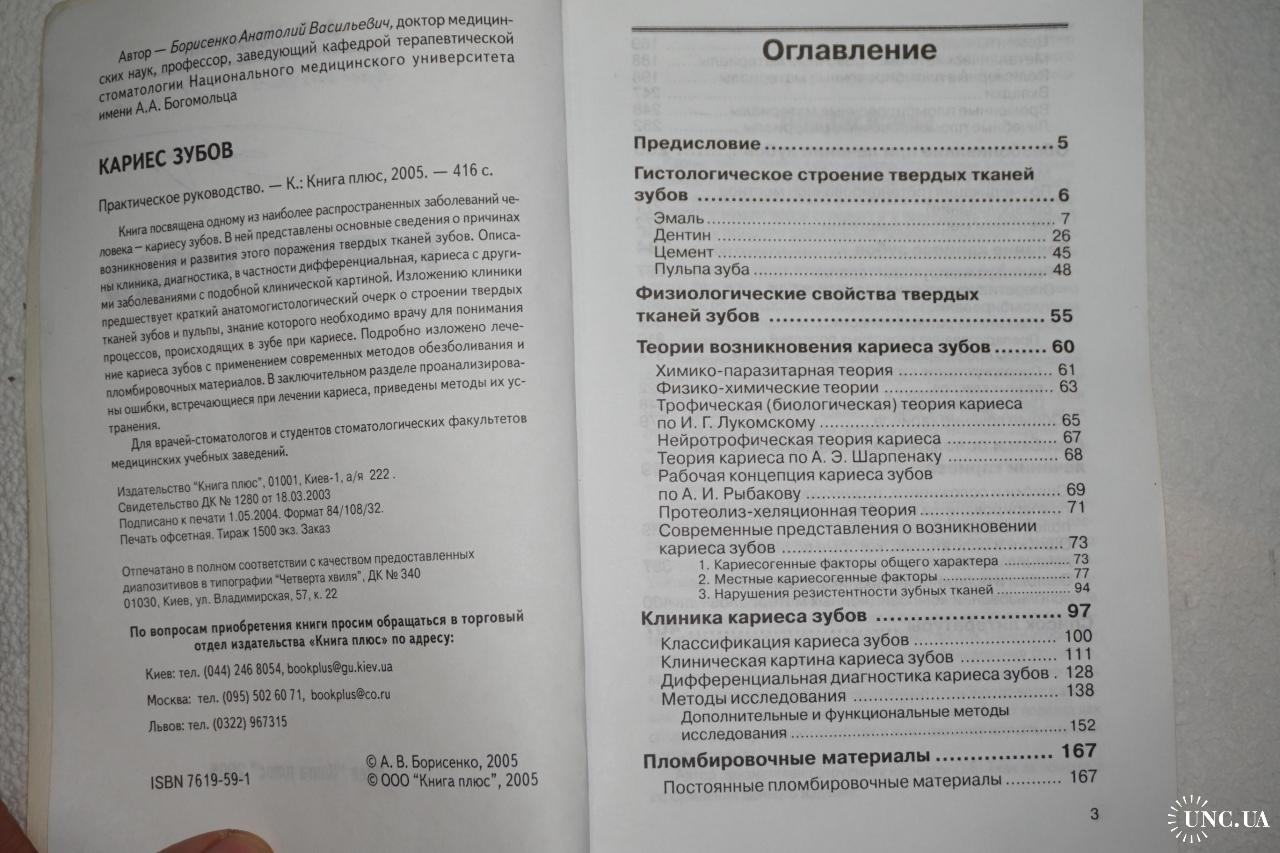 В книге А. В. Борисенко, д-ра мед. наук, проф., зав. кафедрою терапевтической стоматологии Национального медицинского университета им. А. А. Богомольца освещены вопросы лечения кариеса и реставрации зубов. Книга написана в виде вопросов и ответов, что позволит читателю получить четкое представление о предмете, который его интересует. Для врачей-стоматологов и студентов стоматологических факультетов.