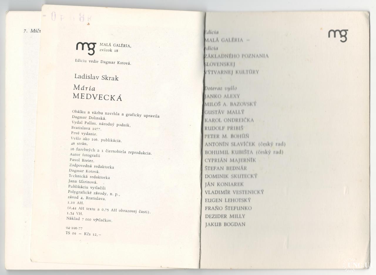 Буклет Мария Медвецька Maria Medvecka. Стан на скані. Аркуши (репродукції) що на сканах відірвались з буклету