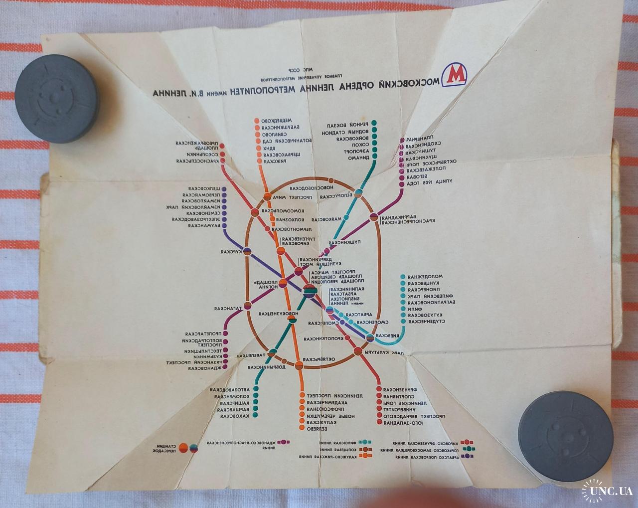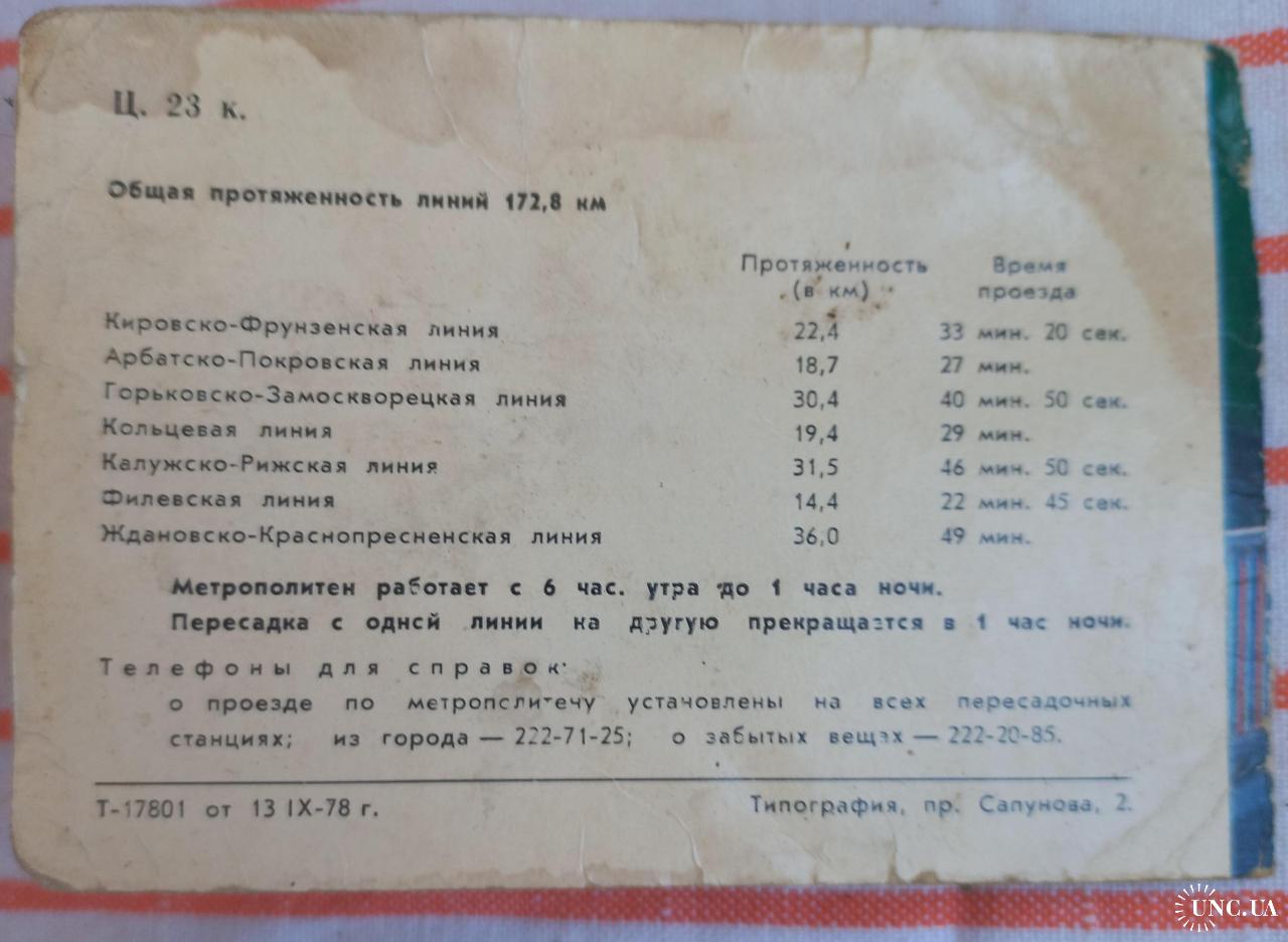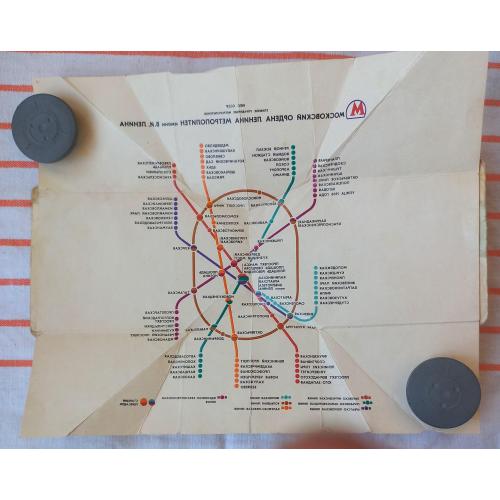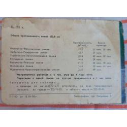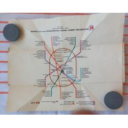 1961-1980На развороте вклеена схема метрополитена со станциями на 7-ми линиях. Схема раскрывается вместе с открытием оберток (обложек) по принципу раскрывающегося цветочного бутона. Примечание. По сторонам буклета наложены грузики для открывания «бутона» и возможности сделать фото. Много потертостей. Состояние удовлетворительное.
