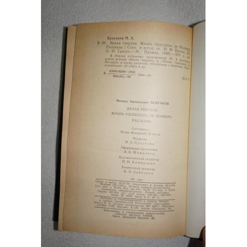 В сборник избранных произведений М.А.Булгакова вошли романы `Белая гвардия` и `Жизнь господина де Мольера`, а также рассказы: `Полотенце с петухом`, `Тьма египетская`, `Я убил` и др. Составление и вступительная статья И.Ф.Бэлзы.