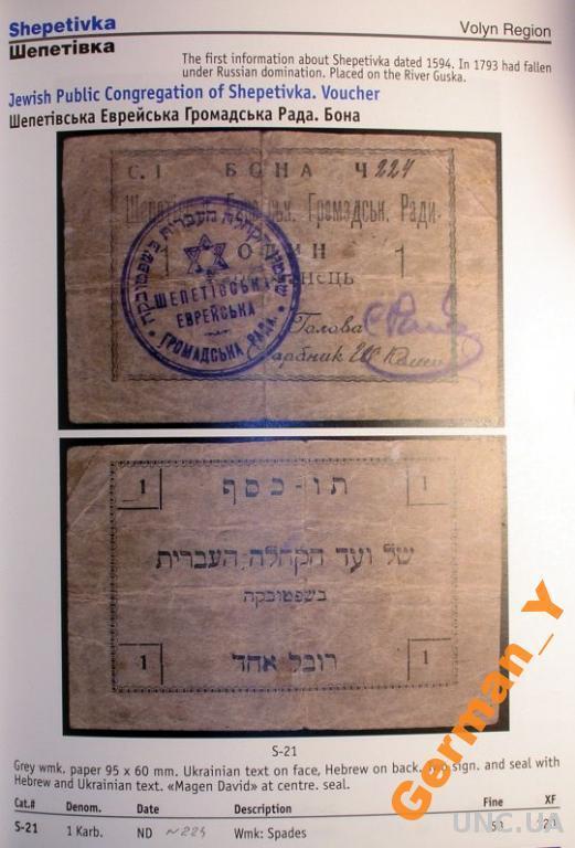 Каталог бумажных денежных знаков еврейских общин времен гражданской войны в России и Украины.