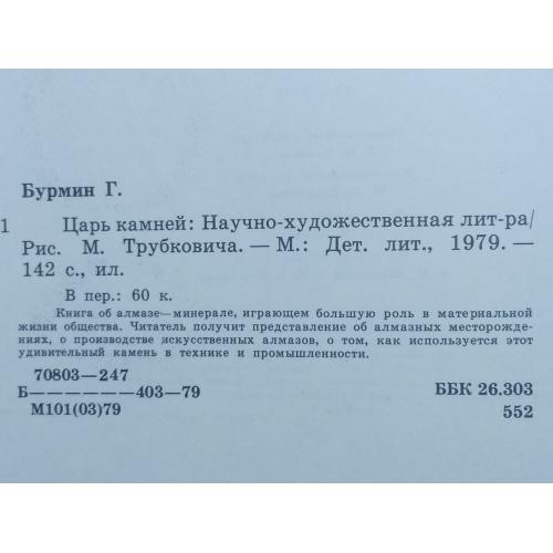 Бурмин. Царь камней. Издательство Детская литература 1979 год. Состояние на фото