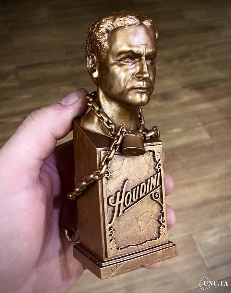 2021-....Бюст известного иллюзиониста и эскаписта Гарри Гудини. Выполнен из прочного полимерного пластика, окрашен под бронзу (медь). Прекрасное украшение для вашего интерьера. Высота фигуры 15 см. Срок изготовления 7 рабочих дней
