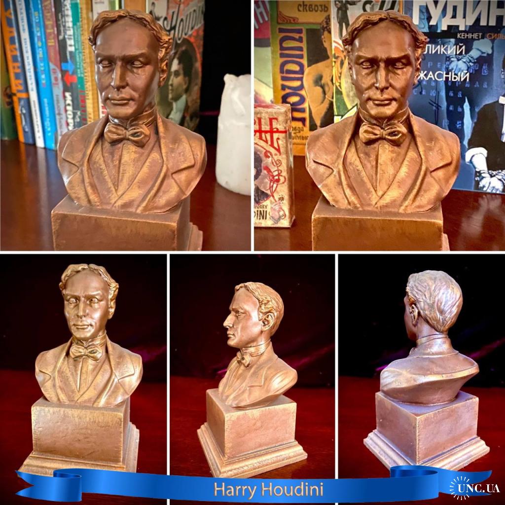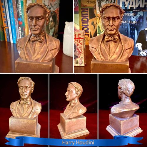 2021-....Бюст известного иллюзиониста и фокусника Гарри Гудини. Высокий постамент. (Смотрите в профиле так же другие модели и бюсты). Выполнен из высококачественного фотополимерного пластика. Окрашен в ручную в 6 этапов. Средний вес кажлого бюста примерно 340 грамм. Средняя высота -15 см. Срок изготовления 7 рабочих дней. (Некоторые модели уже есть готовые к отправке- уточняйте).