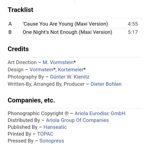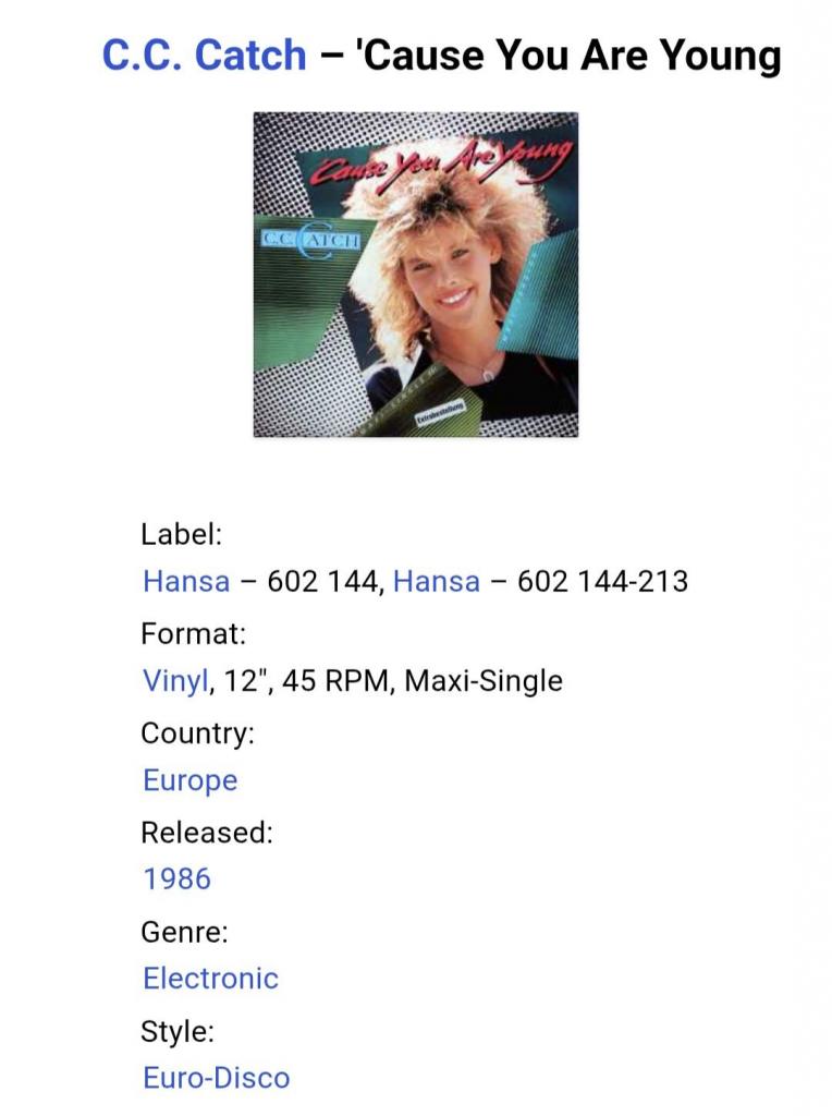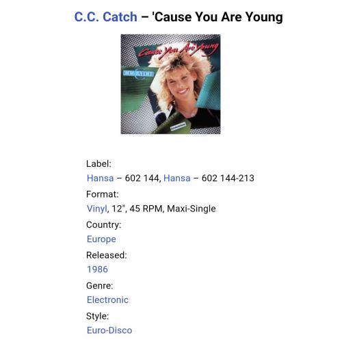 Вінілова платівка. Другий, в дискографії, студійний максі сингл (EP 12), легендарної Німецької виконавиці Голландського походження, стилю Євро Диско, Кароліни Катерини Мюллер, більше відомої під сценічним ім,ям C.C. Catch ('Cause You Are Young) 1986. Випуск фірми (Hansa) Germany, 1986-ий рік. Оригінальне, першопресове, рідне Німецьке видання. Стан платівки EX-. Конверт глянцевий. Стан конверту ЕХ+. Відправка по Україні службами доставки: Нова Пошта, Укр Пошта, Делівері. Також відправляємо посилки за кордон по цілому світу.