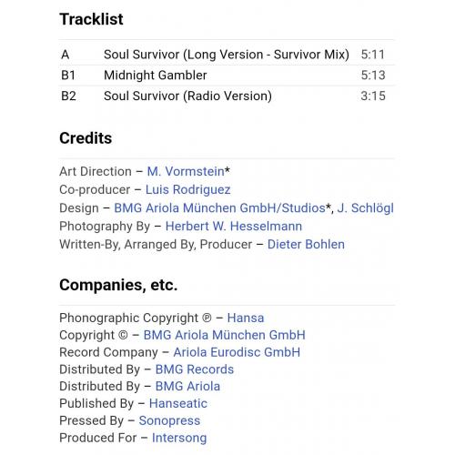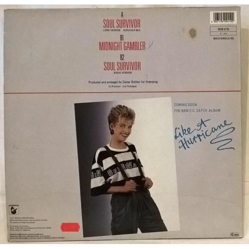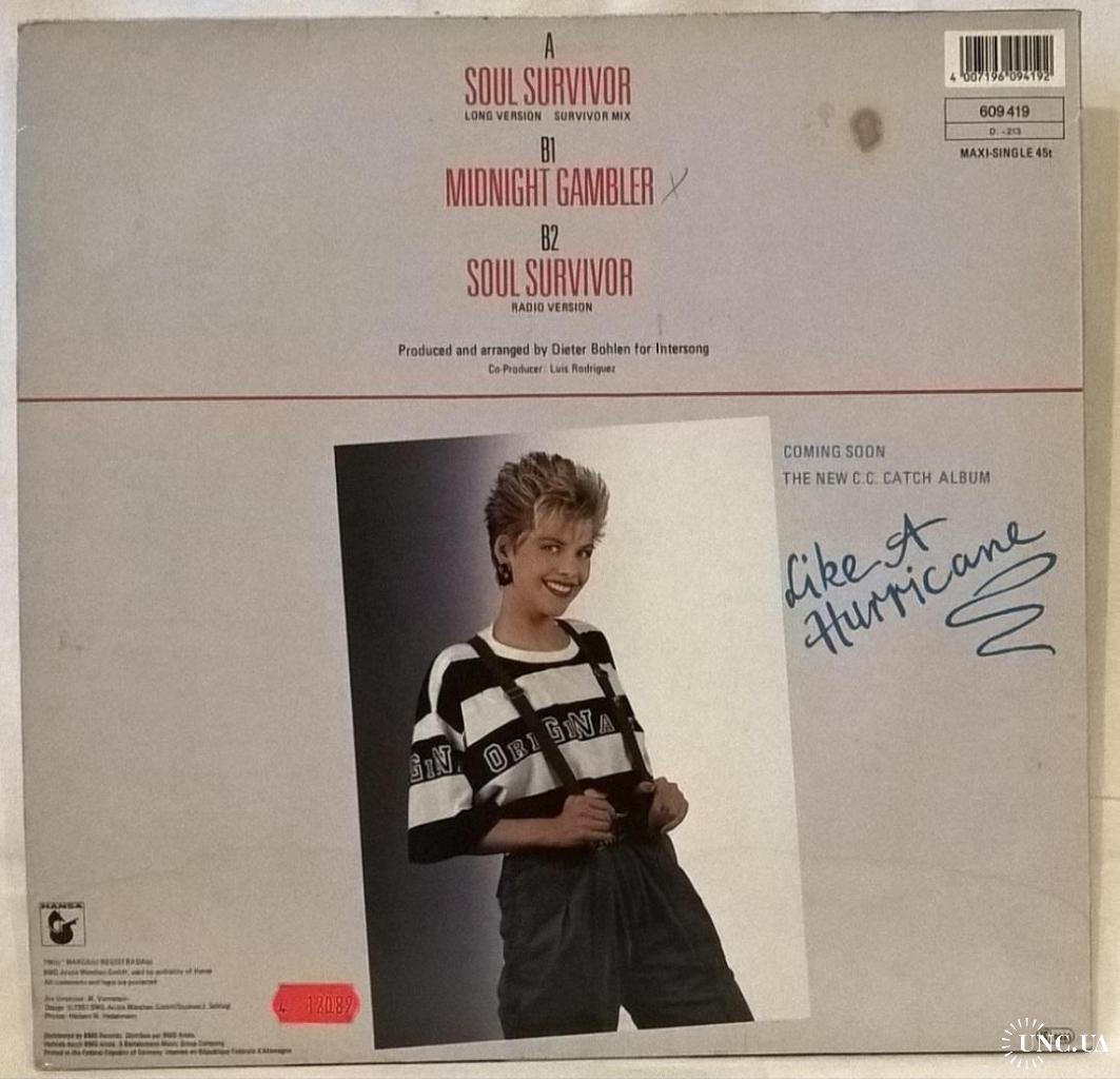 Вінілова платівка. Сьомий, в дискографії, студійний максі сингл (EP 12), легендарної Німецької виконавиці Голландського походження, стилю Євро Диско, Кароліни Катерини Мюллер, більше відомої під сценічним ім,ям C.C. Catch (Soul Survivor) 1987. Випуск фірми (Hansa) Germany, 1987-ий рік. Оригінальне, першопресове, рідне Німецьке видання. Стан платівки VG+. Конверт глянцевий. Стан конверту ЕХ+. Відправка по Україні службами доставки: Нова Пошта, Укр Пошта, Делівері. Також відправляємо посилки за кордон по цілому світу.