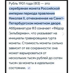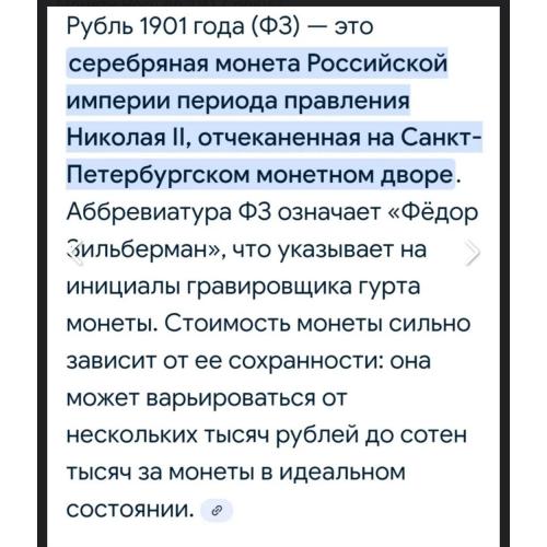 ОригиналЦарский рубель 1901г. (серебро 900пр.) ФЗ' - Фёдор Зильберман (Санкт-Петербург) оригинальная монета времен Николая 2.☝️Гарантия подлинности пожизненная!Если отправка наложным платежом то аванс 100гр.(страховка доставки)остальная сумма оплачивается при получении.