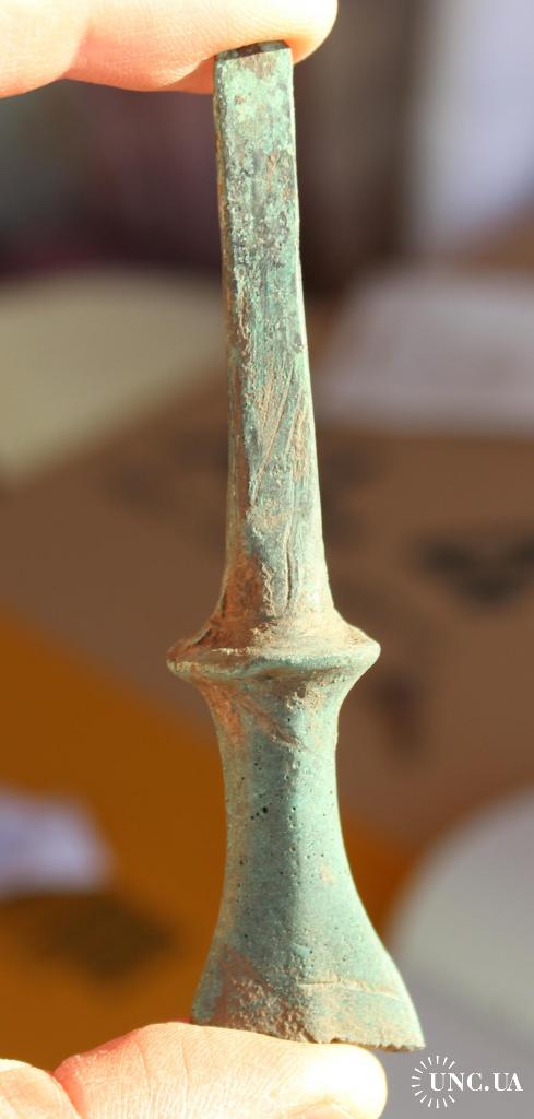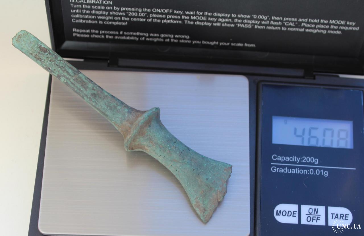 Уламок меча чи кинжала. Копане. В такому стані, як знайшов без реставрації. Бронза. Чудова зелена патина.