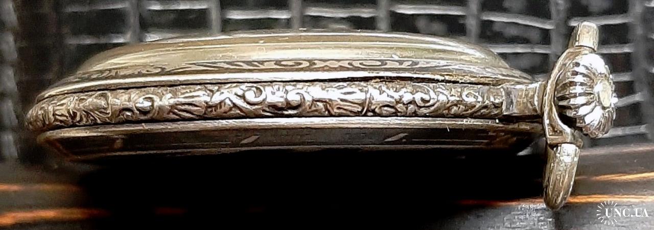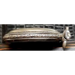 Корпус из серебра. По кругу узорная вязь с чернением. Диаметр корпуса 47 мм.