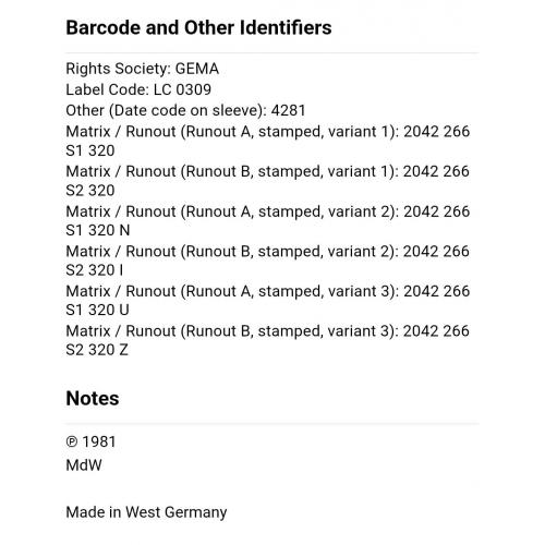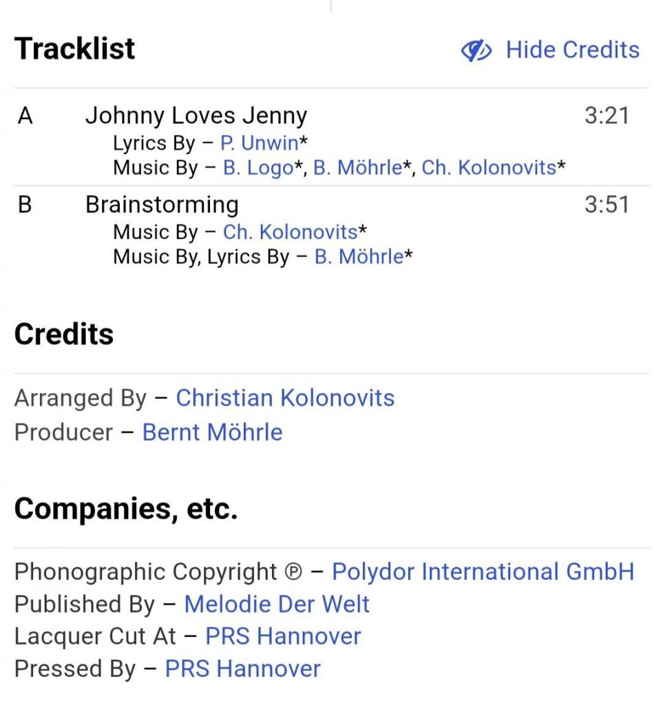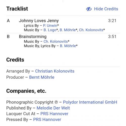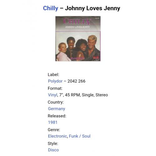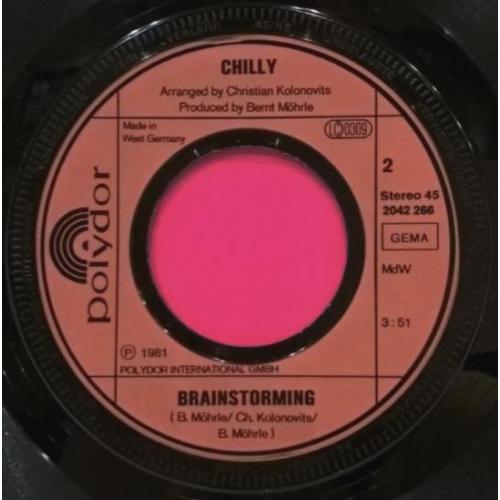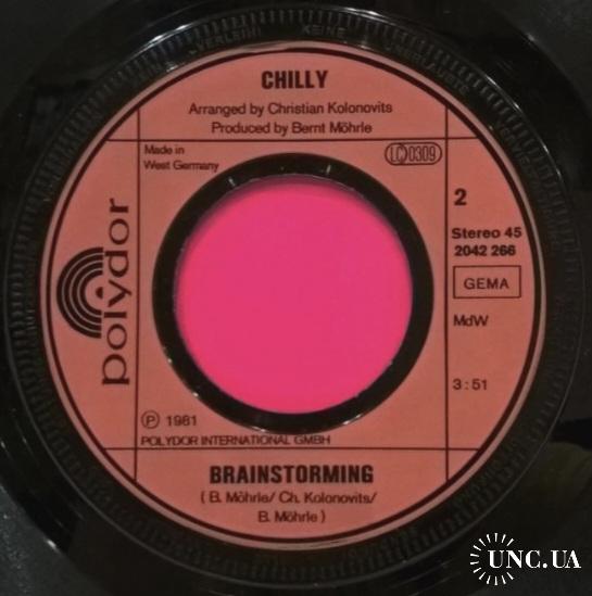 Вінілова платівка. Третій, в дискографії, студійний міні сингл (ЕР 7), Німецької диско поп групи Chilly, до складу якої, на той час, входили Уте Вебер, Бред Хауелл, Вернер Зюдхофф, Андреа Лінц, Софія Еіанго, Оскар Пірсон та їхній продюссер Бернт Морле (Johnny Loves Jenny / Brainstorming) 1979. Випуск фірми (Polydor) Germany, 1981-ий рік. Оригінальне, Німецьке видання. Стан платівки EX-. Стан конверту ЕХ+. Відправка по Україні службами доставки: Нова Пошта, Укр Пошта, Делівері. Також відправляємо посилки за кордон по цілому світу.