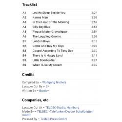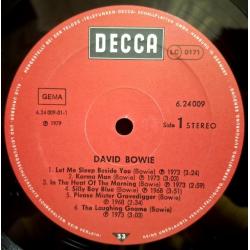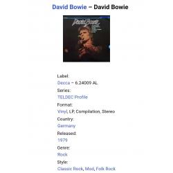 Вінілова платівка. Шоста, в дискографії, офіційна студійна збірка найкращих хітів, Британського глем-рок, поп-рок, хард-рок музиканта, володара титулів зірки алеї слави, Ордена Британської Імперії, Ордена мистецтва та літератури, покійного вже, Девіда Роберта Джонса, більше відомого під сценічним ім'ям Девід Боуі (Greatest Hits) 1968-73. Випуск фірми (Decca) Germany, 1979-ий рік. Оригінальне, першопресове Німецьке видання. Стан платівки ЕХ-. Конверт глянцевий. Стан конверту ЕХ-. Відправка по Україні службами доставки: Нова Пошта, Укр Пошта, Делівері. Також відправляємо посилки за кордон по цілому світу.