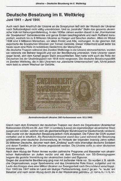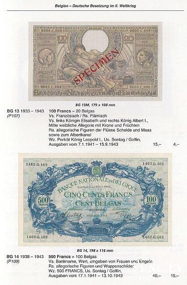 Заграничные денежные знаки государств оккупированных Германией в ходе Первой и Второй Мировых Войн. Рассмотрены как выпуски подконтрольные германским властям, в т.ч. оккупационные, так и собственные выпуски государств. Цветные иллюстрации. Цены в евро, для двух состояний банкнот