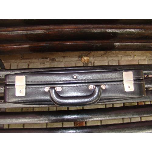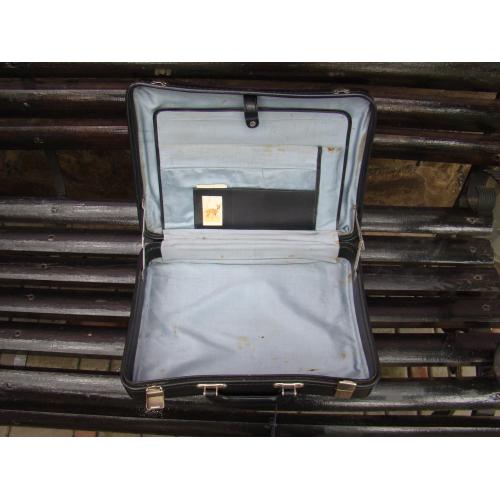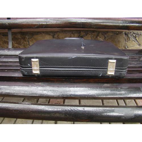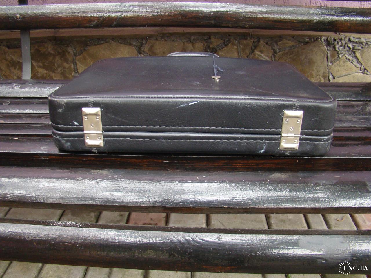 1981-2000Дипломат - каркас, обтянут черным кожзамом, замки рабочие, ключ в комплекте, замки ключом закрываются. Размеры: длина 44 см, ширина 31 см, толщина 9 см. Хорошо подойдет для переноски инструментов и прочего. В остальном все как на фото.