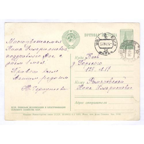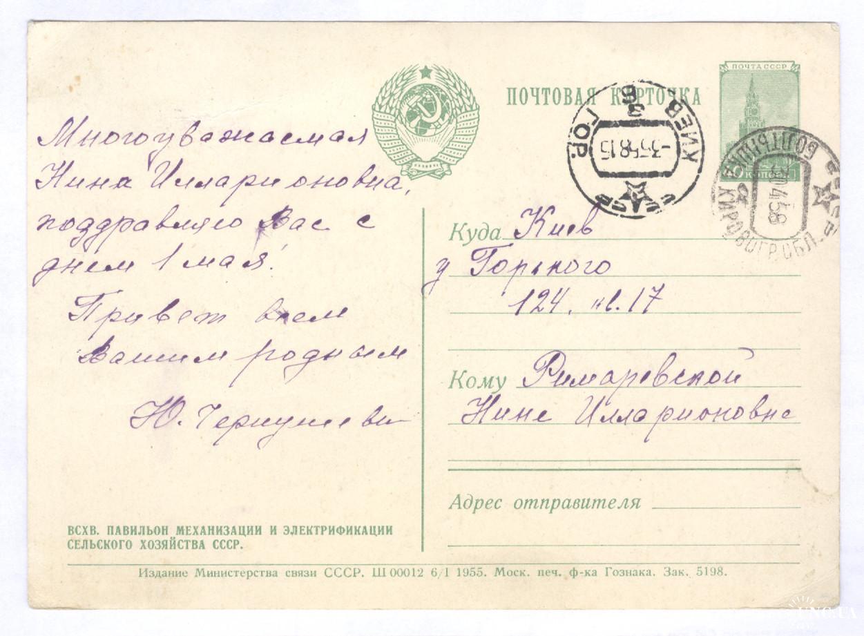 Почтовое отправление: Болтышка Кировоградская область Киев 30 апреля 1958 год.