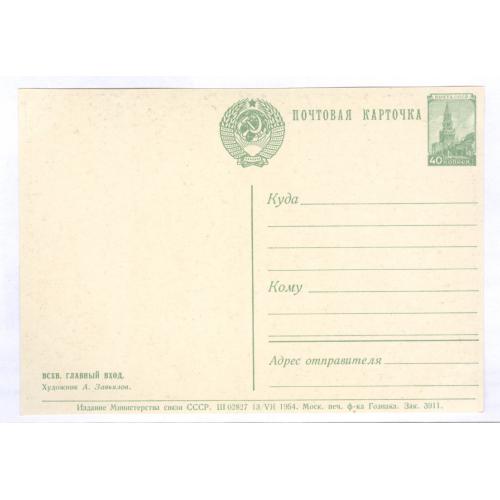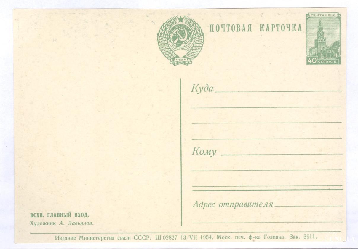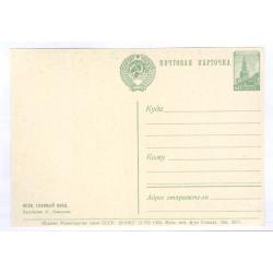 Двухсторонняя маркированная почтовая карточка СССР с маркой 8-го стандартного выпуска 50 копеек "Спасская башня московского кремля" офсет зеленая.