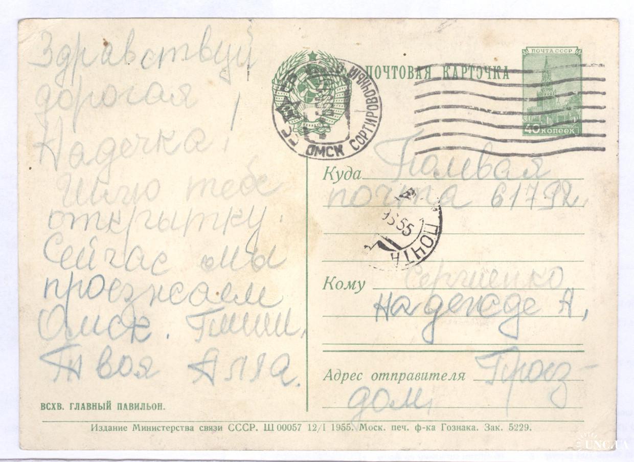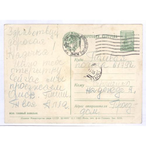 Почтовое отправление: Омск - Полевая почта 1955 год