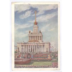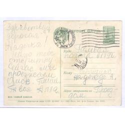 Двухсторонняя маркированная почтовая карточка СССР с маркой 8-го стандартного выпуска 50 копеек "Спасская башня московского кремля" офсет зеленая.