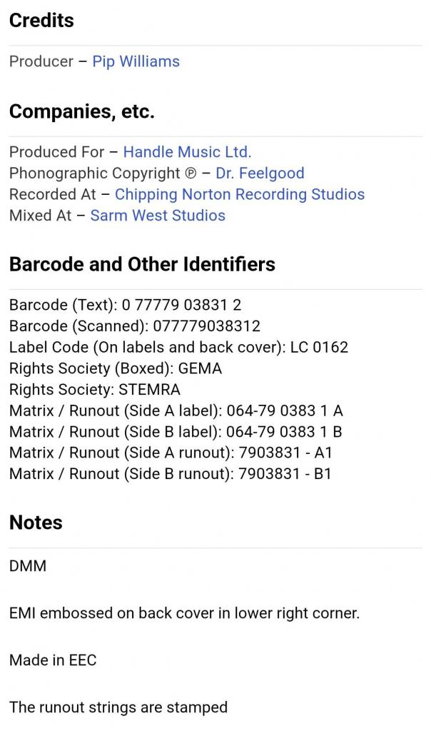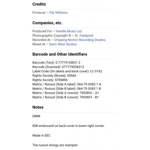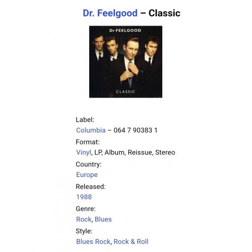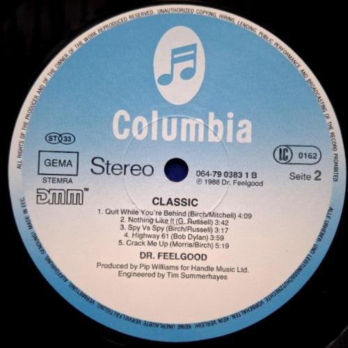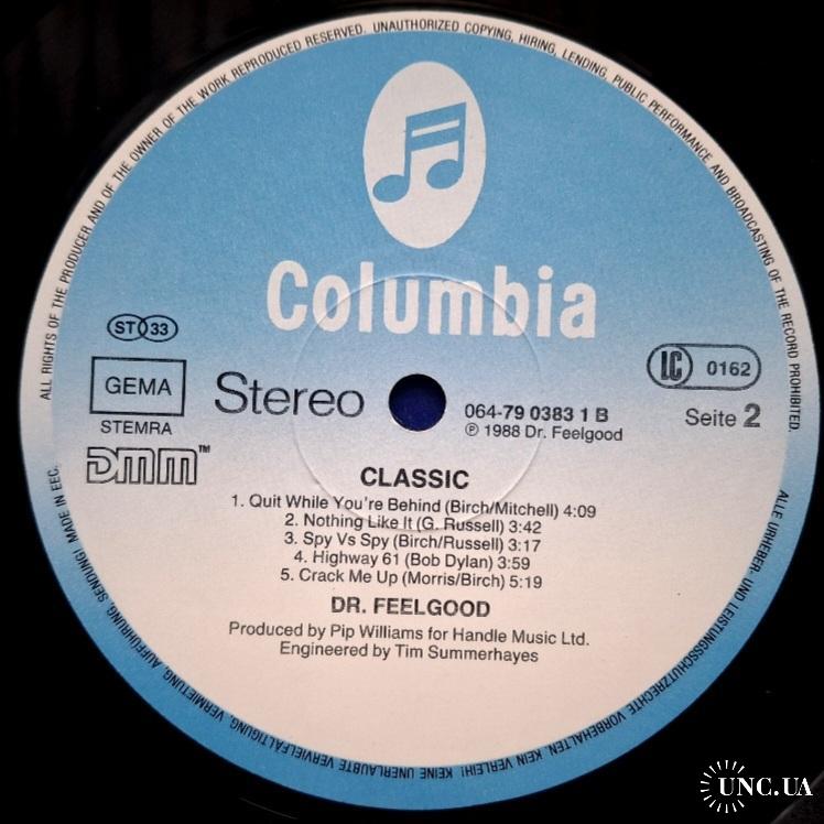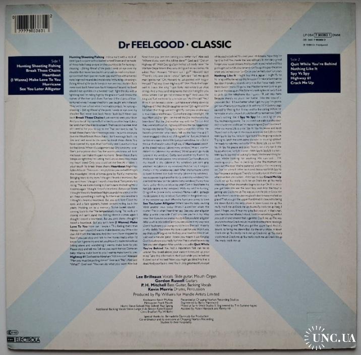 Вінілова платівка. П'ятнадцятий, в дискографії, студійний альбом, Британської прото-панк, блюз-рок, паб-рок групи із Кенві Айленда, Dr. Feelgood, до складу якої, на той час, входили учасники Лі Брілло, Гордон Рассел, Філ Мітчел та Кевін Морріс (Classic) 1987. Випуск фірми (Columbia) Europe, 1988-ий рік. Оригінальне Європейське видання. Стан платівки NM-. Стан конверту EX+. Відправка по Україні службами доставки: Нова Пошта, Укр Пошта, Делівері. Також відправляємо посилки за кордон по цілому світу.