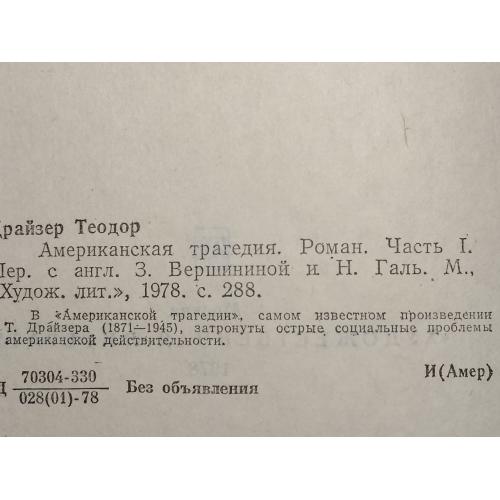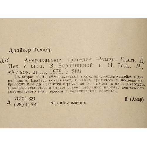 Драйзер Теодор. Американская трагедия в 2 томах. Увеличенный формат. Худлит. 1978 год В очень хорошем остоянии.
