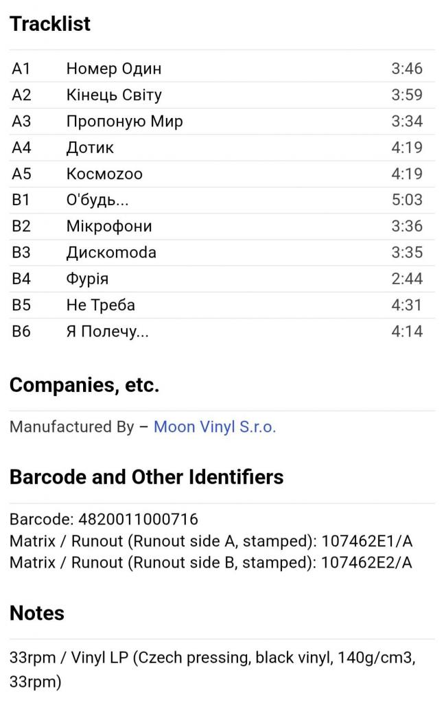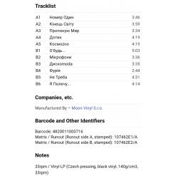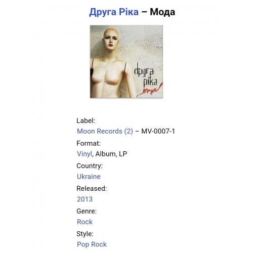Вінілова платівка. Четвертий, в дискографії, студійний альбом Української арт-рок, бріт-поп групи Друга Ріка, яка складалась на той час з учасників: Валерій Харчишин, Олександр Барановський, Сергій Біліченко, Віктор Скуратовський, Сергій Гера та Олексій Дорошенко (Мода) 2008. Випуск фірми (Moon Records) Ukraine, 2013-ий рік. Нове, запаковане видання. Категорія S/S. Відправка по Україні службами доставки: Нова Пошта, Укр Пошта, Делівері. Також відправляємо посилки за кордон по цілому світу.
