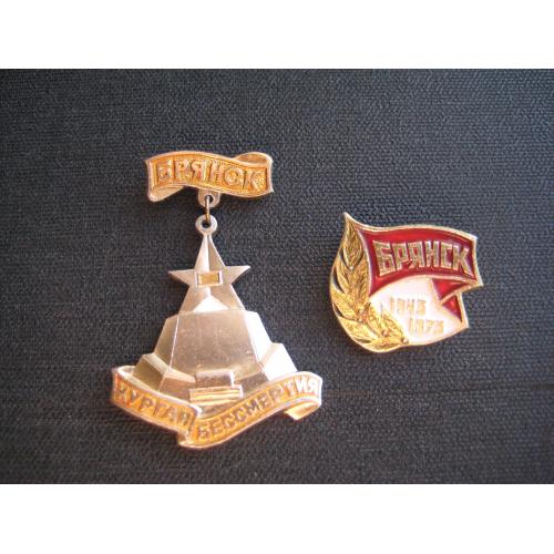 №4473. Два значка-одним лотом (легк.мет.) - Брянськ 1943-1973 Брянск Курган бессмертия. Клеймо - СМЗ, САЗ. Стан прошу оцінювати по фото. Висота одного -52мм. Розмір другого:23х27мм. Пересилка - Нова пошта, Укрпошта. Для киян можливість зустрічі та перегляду (неділя метро Нивки). В РФ и Белоруссию не отправляю!