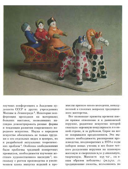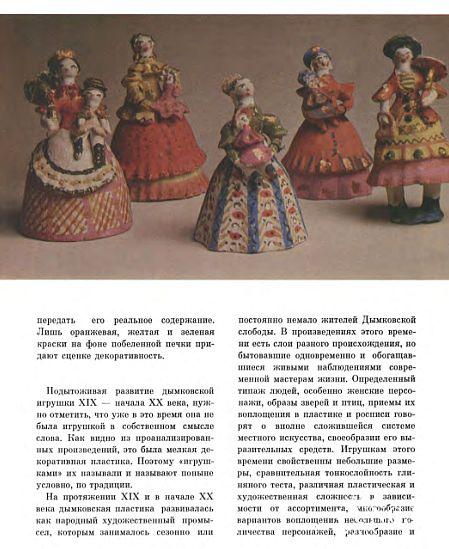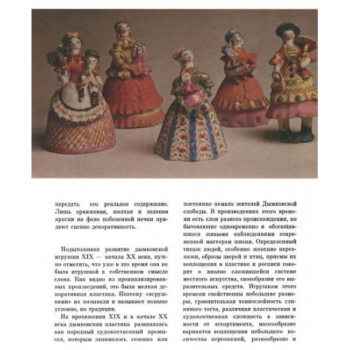 Питающая ее многовековая традиция донесла до наших дней неповторимое мастерство малой декоративной скульптуры в веселых и красочных фигурках барынь, водоносок, кормилиц, жанровых сценках, в изображениях зверей и птиц. О развитии уникального промысла вплоть до современности, о творчестве многих поколений и фамильных династий дымковских мастериц рассказывает это первое посвященное ему монографическое исследование.