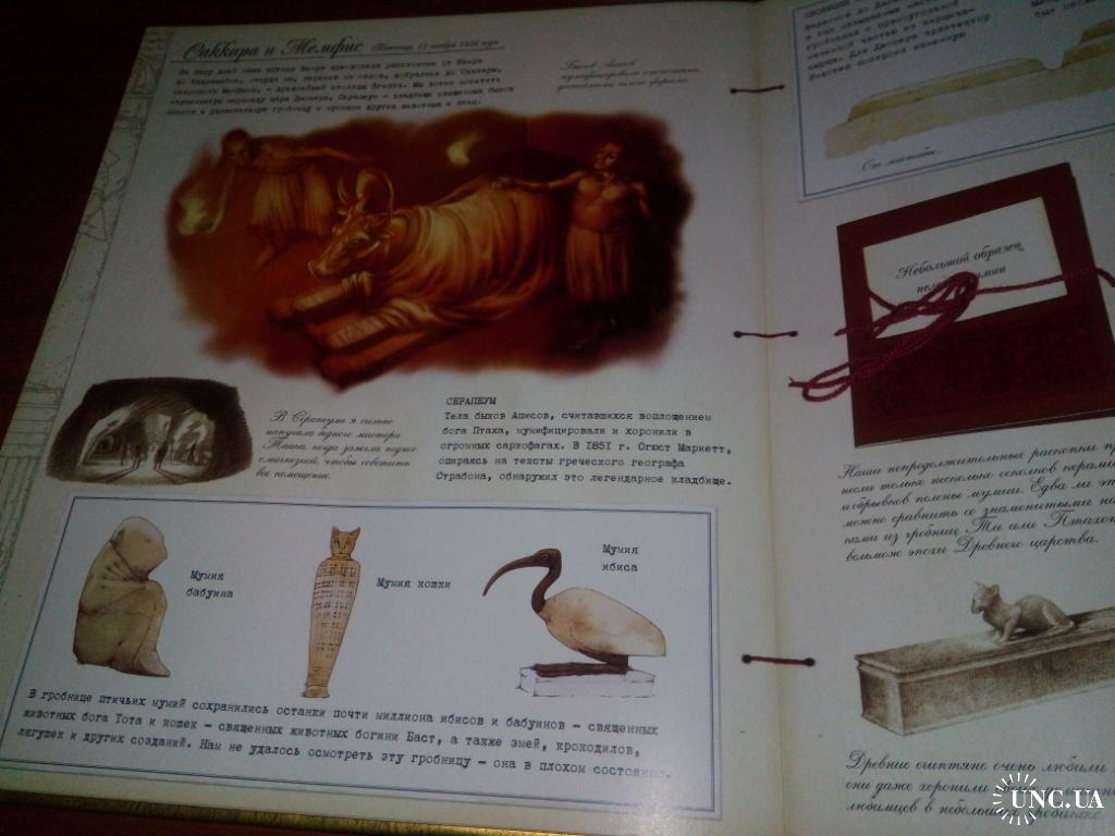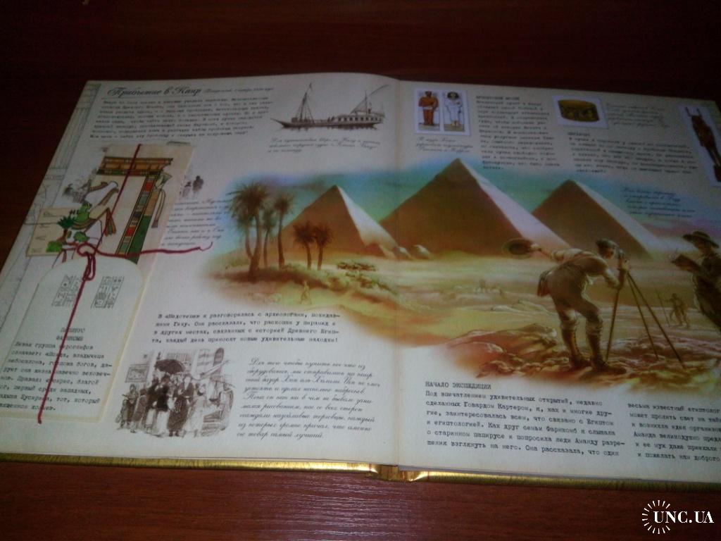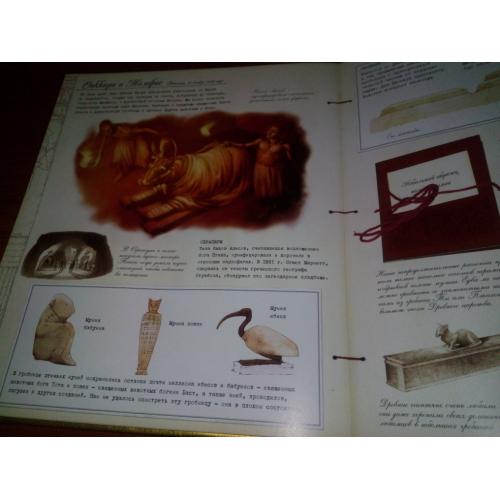 Эта книга содержит не только увлекательное содержание, но и дополнительные материалы в виде красочных карт, невероятных мини-книжек, образца пелены мумии, схемы пирамид, магического глаза сфинкса, писем с открытками, фотографиями и багажным талоном. Обложка книги инкрустирована волшебными камнями.
