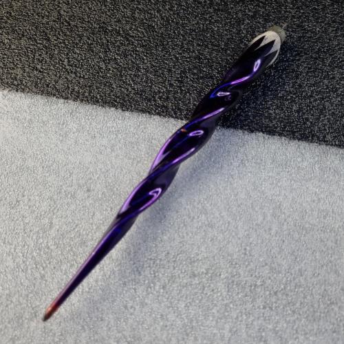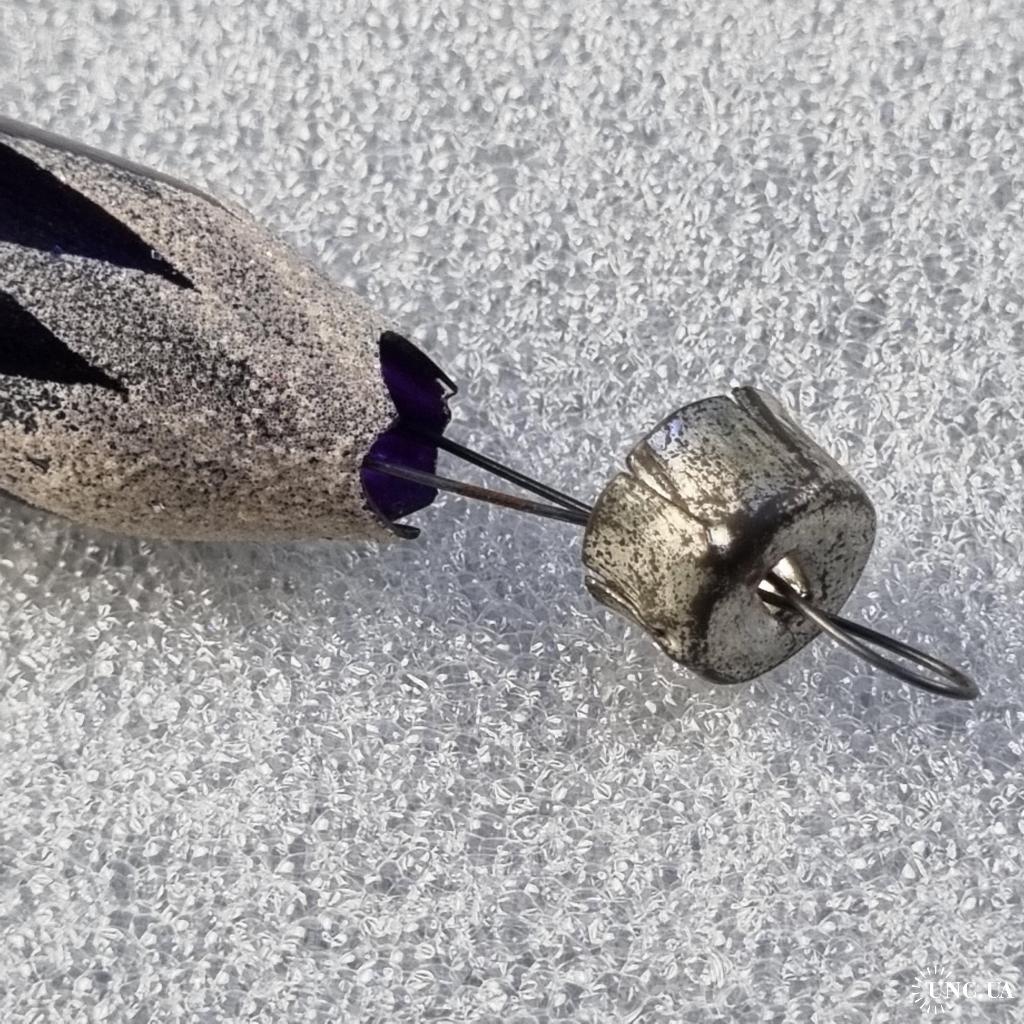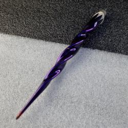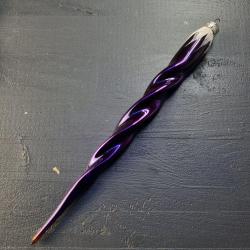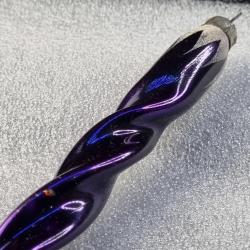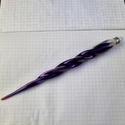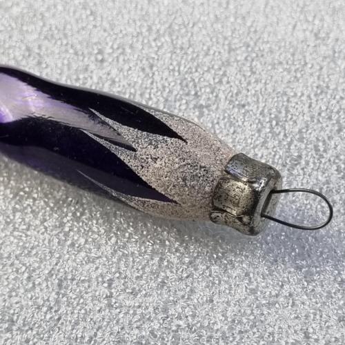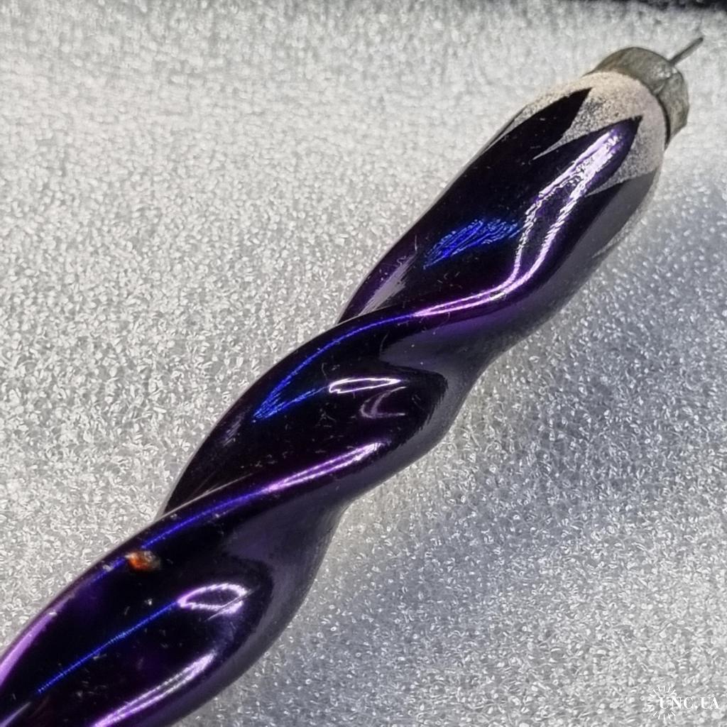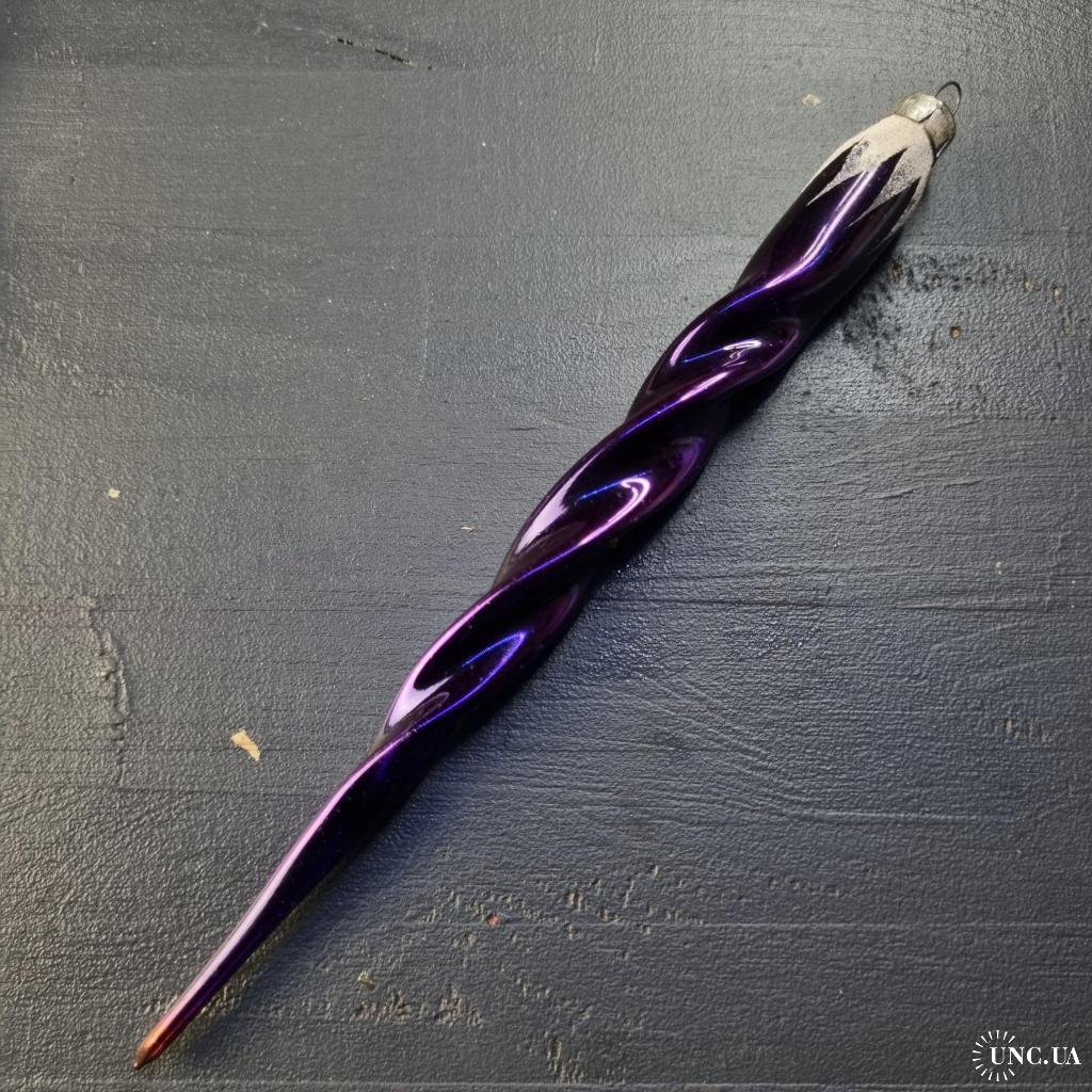 Рідкісна вінтажна ялинкова прикраса зі скляним корпусом у формі витонченої спіралі. Насичений фіолетовий колір із глянцевим блиском, ручний розпис, плавний перехід у червоний на кінчику. Верх оздоблений металевим ковпачком із петелькою для підвішування. Ймовірно, виготовлена у 60–70-х роках. Ідеально підійде для колекціонерів, ретро-декору або створення атмосферного новорічного інтер’єру.