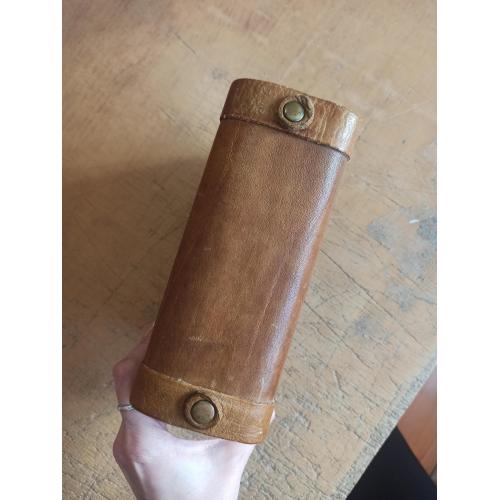В индивидуальном кожаном переплете ручной работы.