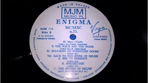 Оригинальная фирменная виниловая пластинка. Первый дебютный студийный альбом легендарной группы этно группы Enigma (MCMXC a.D.) 1990. Выпущено фирмой (MJM Music Pl) Poland по лицензии фирмы (Virgin) England в 1991-ом году. Пластинка в отличном состоянии, относится к категории ЕХ+. Конверт глянец. Состояние конверта ЕХ. Отличное качество стерео звука, оригинальная обложка, цветная полиграфия. Отправляю Новой Почтой, Деливери, Ин Тайм, Укр Почтой /Предоплата/ (На выбор покупателя), возможна отправка за границу.