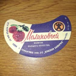 Этикетка Напиток Малиновый з-д Красная Бавария Ленинград 57 отклеена