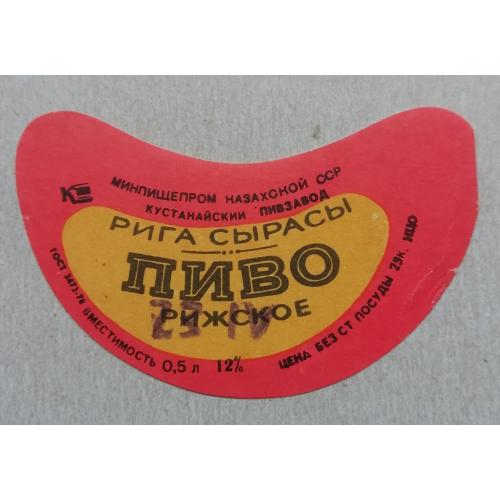 Этикетка пивная РИЖСКОЕ- Кустанай Казах ССР- винтаж!!! БАНАН